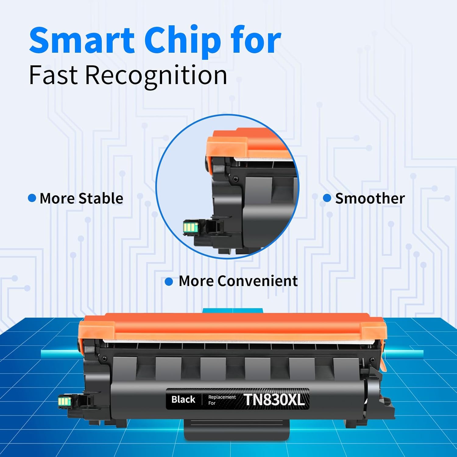 - ăLatest Smart CHIPă: Our TN830 TN830XL TN830/XL/V toner cartridge equipped with the latest smart chip ensures the high compatibility. This helps you be more productive