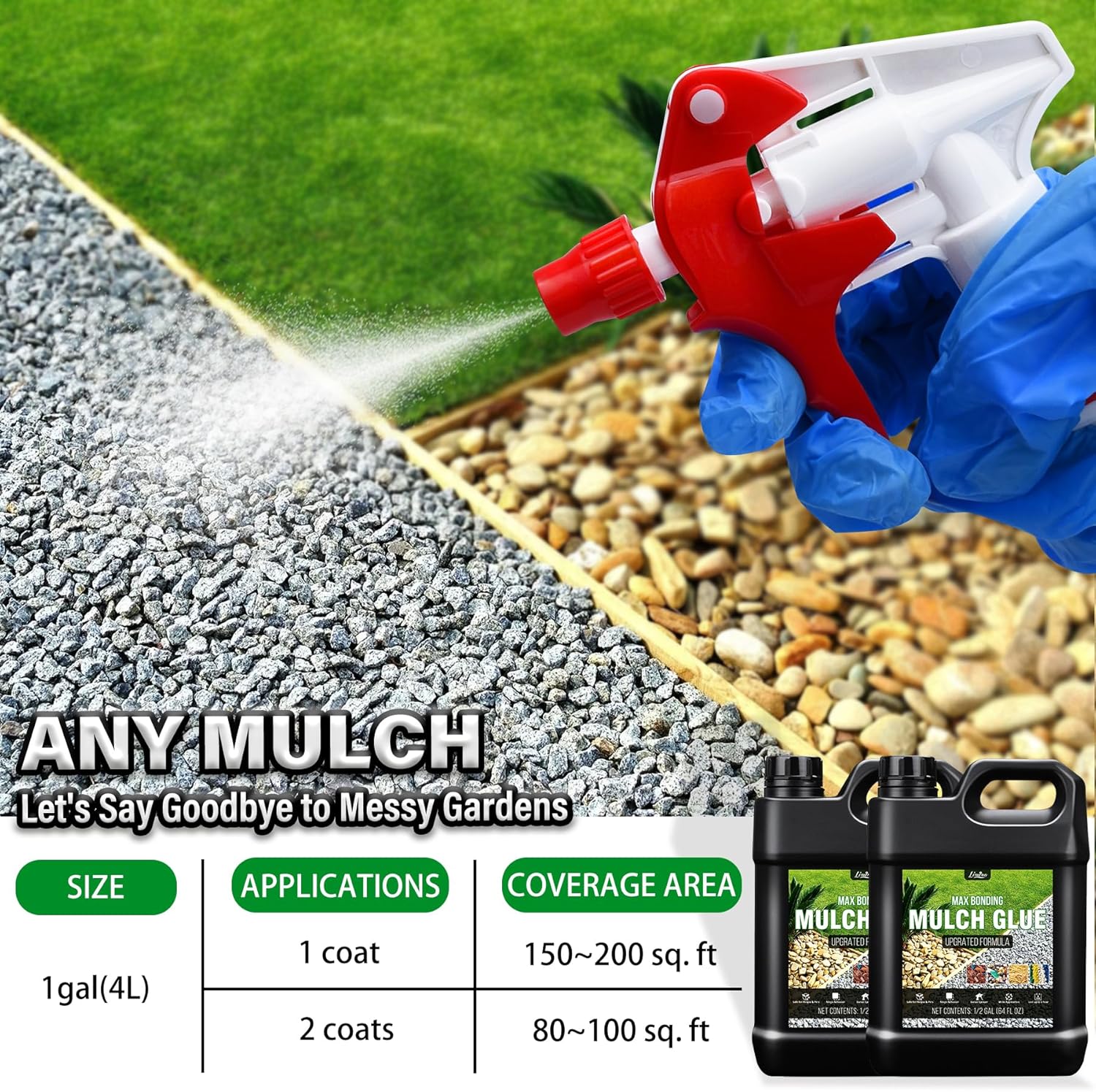 - SAY GOODBYE TO MESSY LANDSCAPES - Our upgraded mulch glue provides 10x stronger adhesion that keeps mulch, wood chips, shells, sand, pine grass, small pebbles, hay and straw, small gravel, and leaf piles securely in place. By using our gravel binder glue, you can effortlessly create beautiful and long-lasting outdoor spaces.