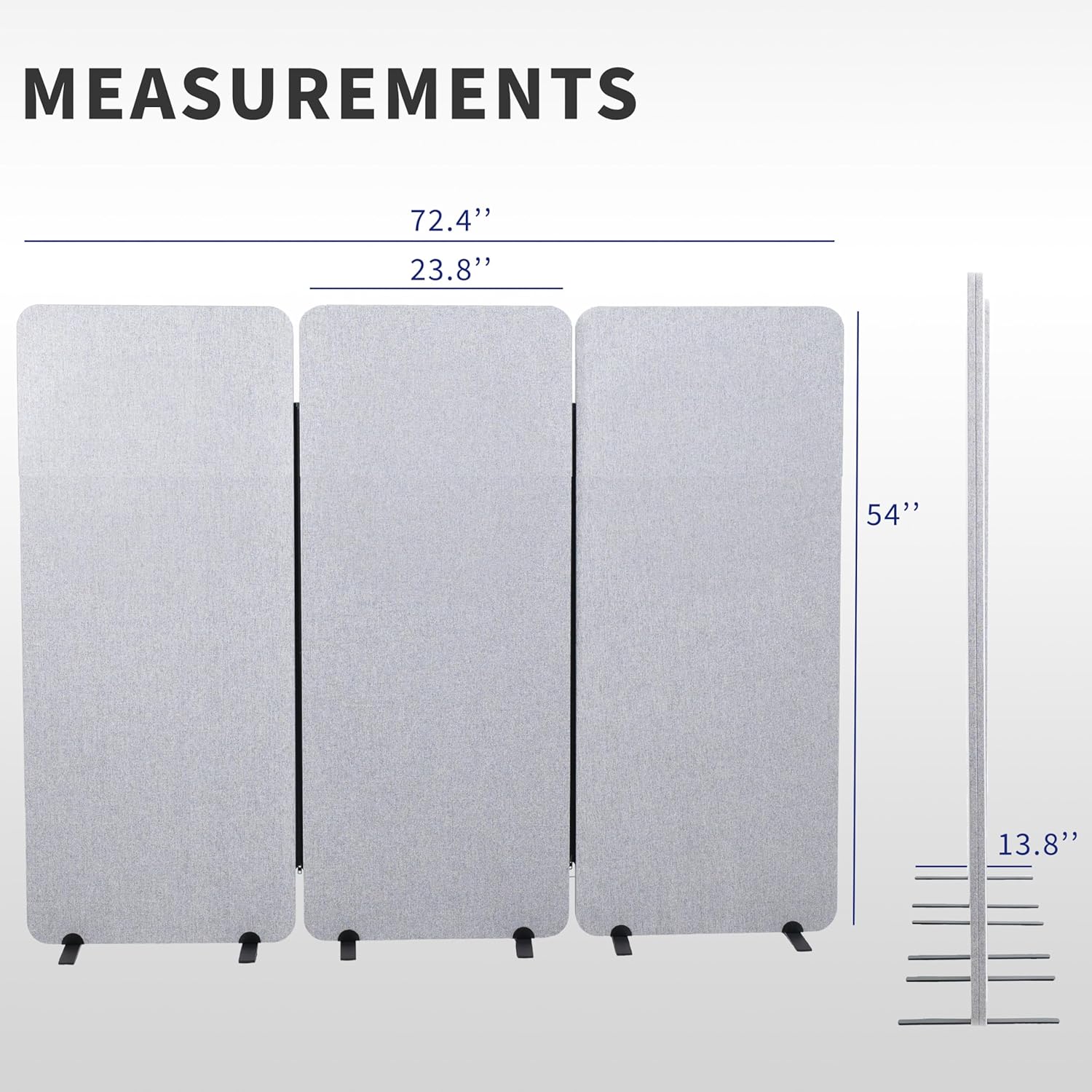 - Freestanding Privacy Panel: Block off distractions and give yourself a quiet, private work area with our 3 room dividers! Each panel measures 23.8”L x 56.1”H for a total length of 72.4”, allowing flexible placement options to create the setup you need