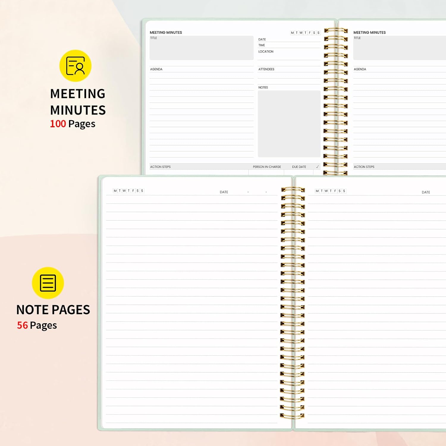 - Bonus Notes Pages In the Back: Extra 56 college ruled pages in the back provide space for note taking, and with the date section at the top for tracking them. With 100 pages for meeting minutes, the manager notebook will cover more than half a year, even in daily use. Also provides index pages for organizing this office planner.