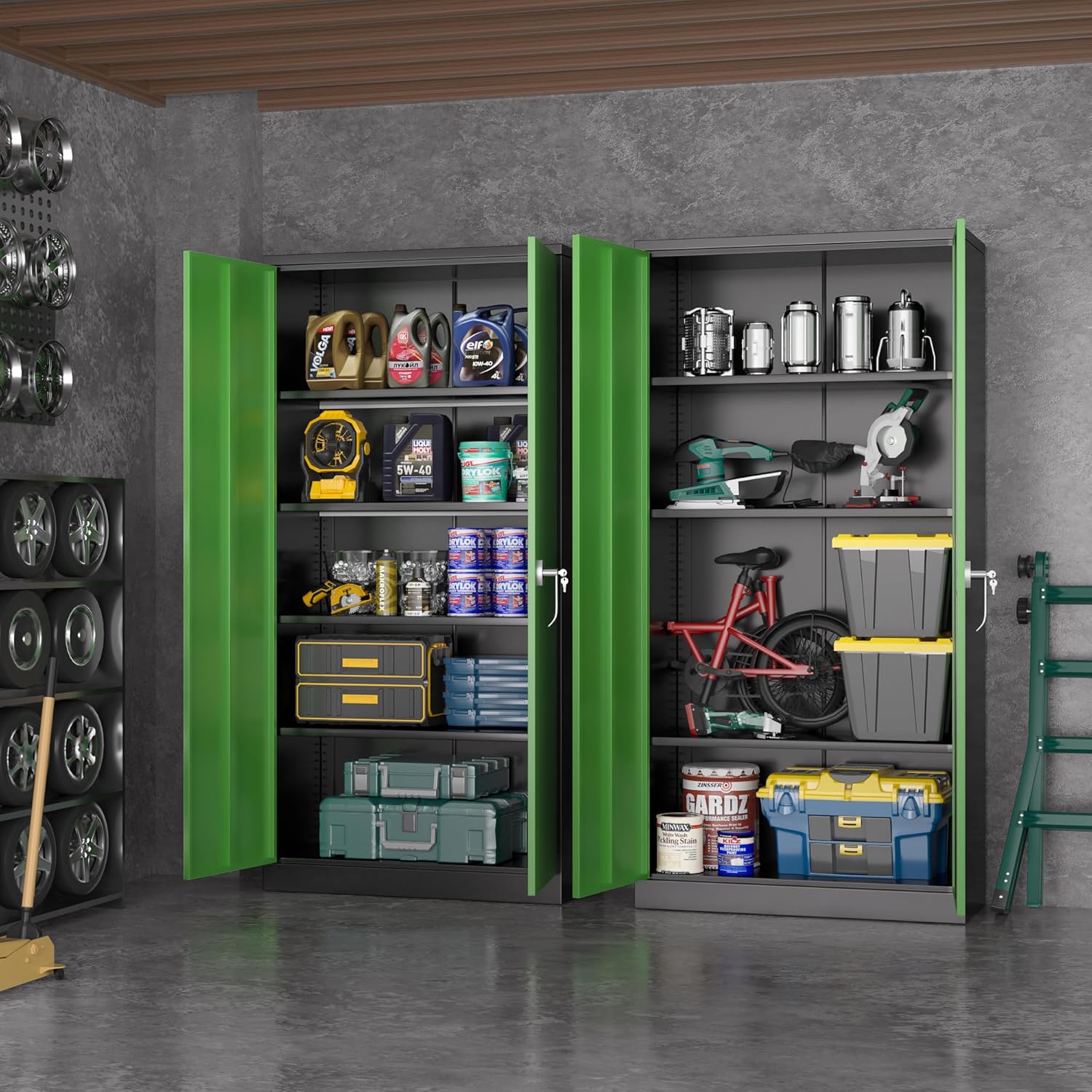 Greenvelly Metal Garage Storage Cabinet, 72" Tall Steel Storage Cabinets with Doors and Adjustable Shelves, Metal Tool Cabinets, Locking File Cabinet for Home Office, Garage, School (Black&Green)