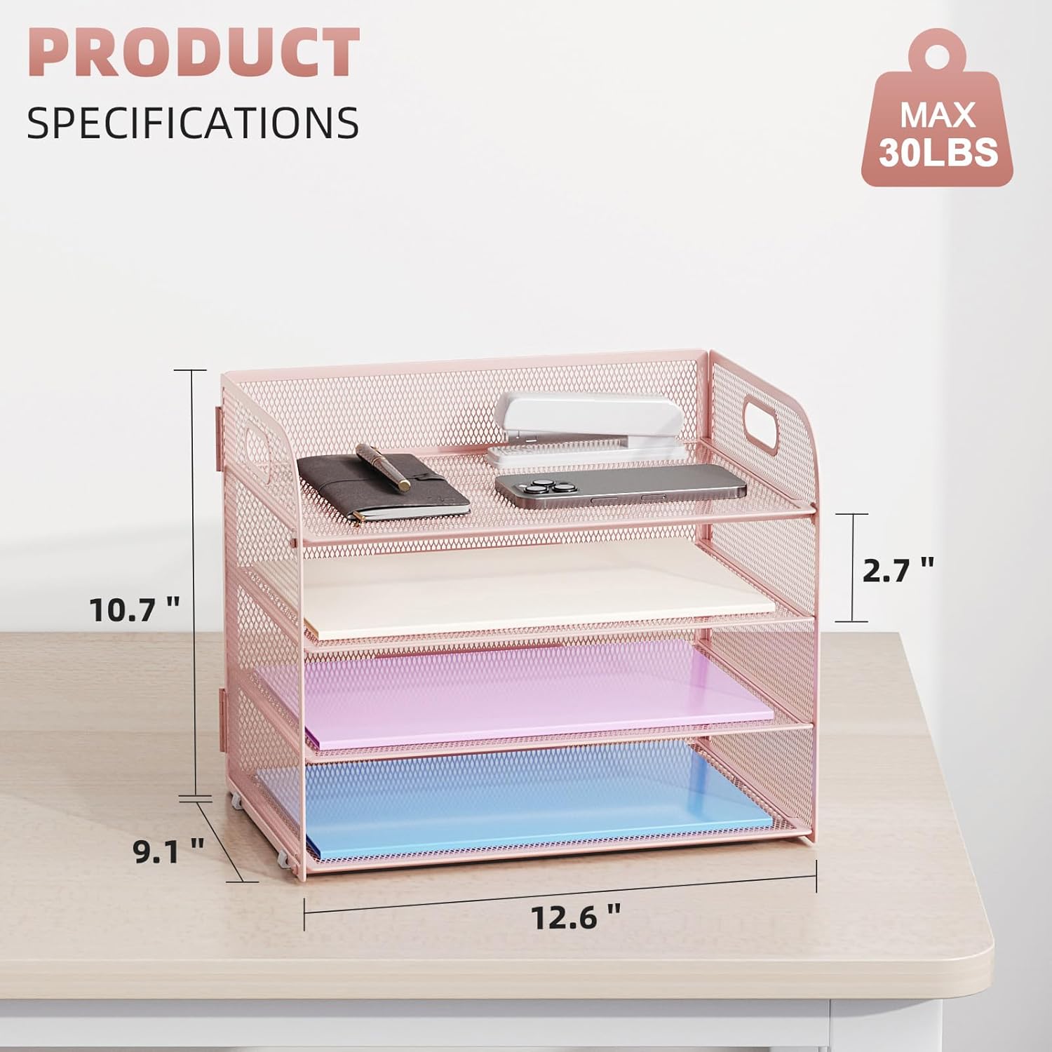 - 【High Qualty】 The mesh desk file organizer is made of lightweight durable metal mesh and reinforced with a solid steel frame that makes it have long-lasting strength and reliable performance