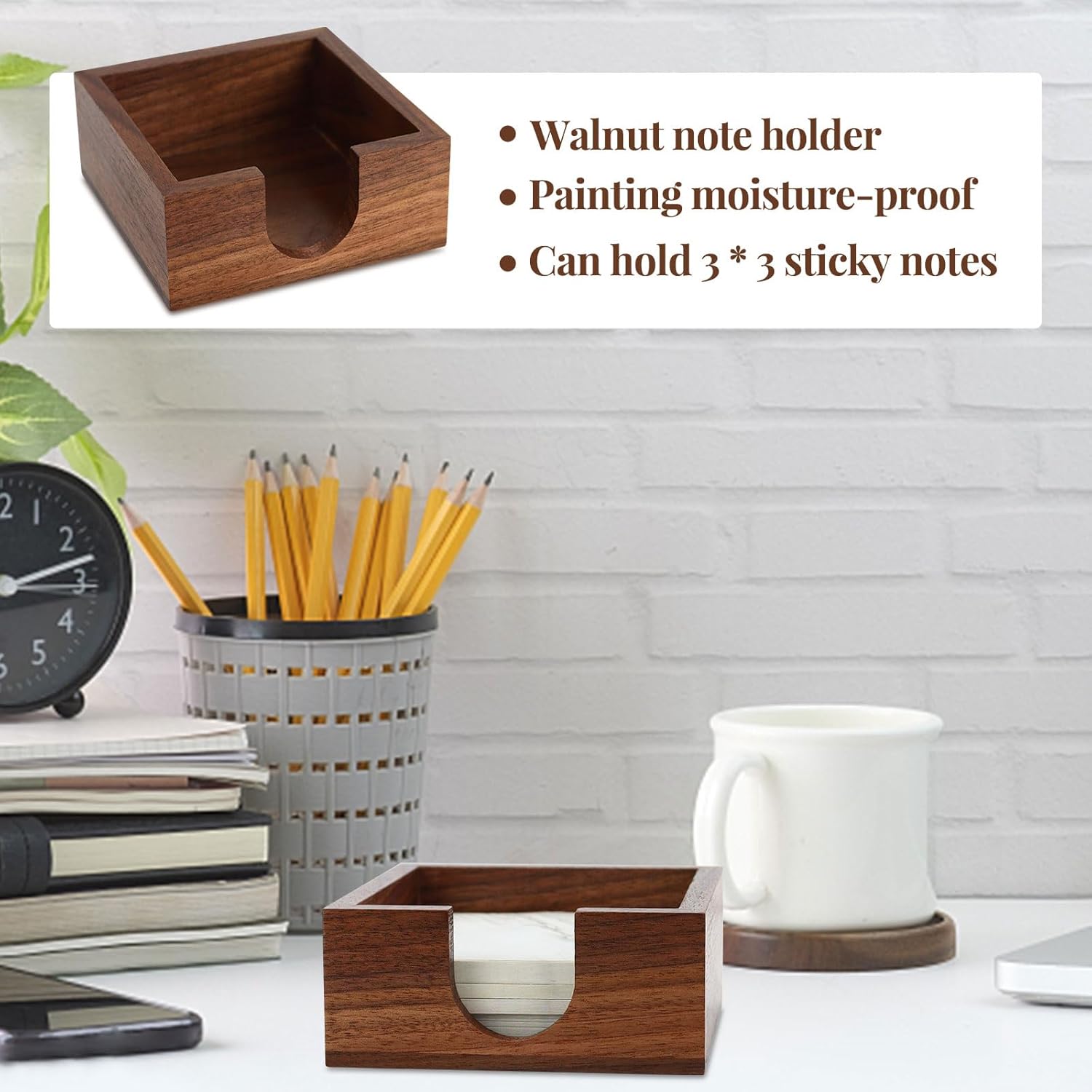 - π Material: This walnut sticky note holder made with the high quality of walnut, the wood color memo holder for desk has excellent longevity and robustness. Stable on desk, good partner for organizing note pads on top of your desk.