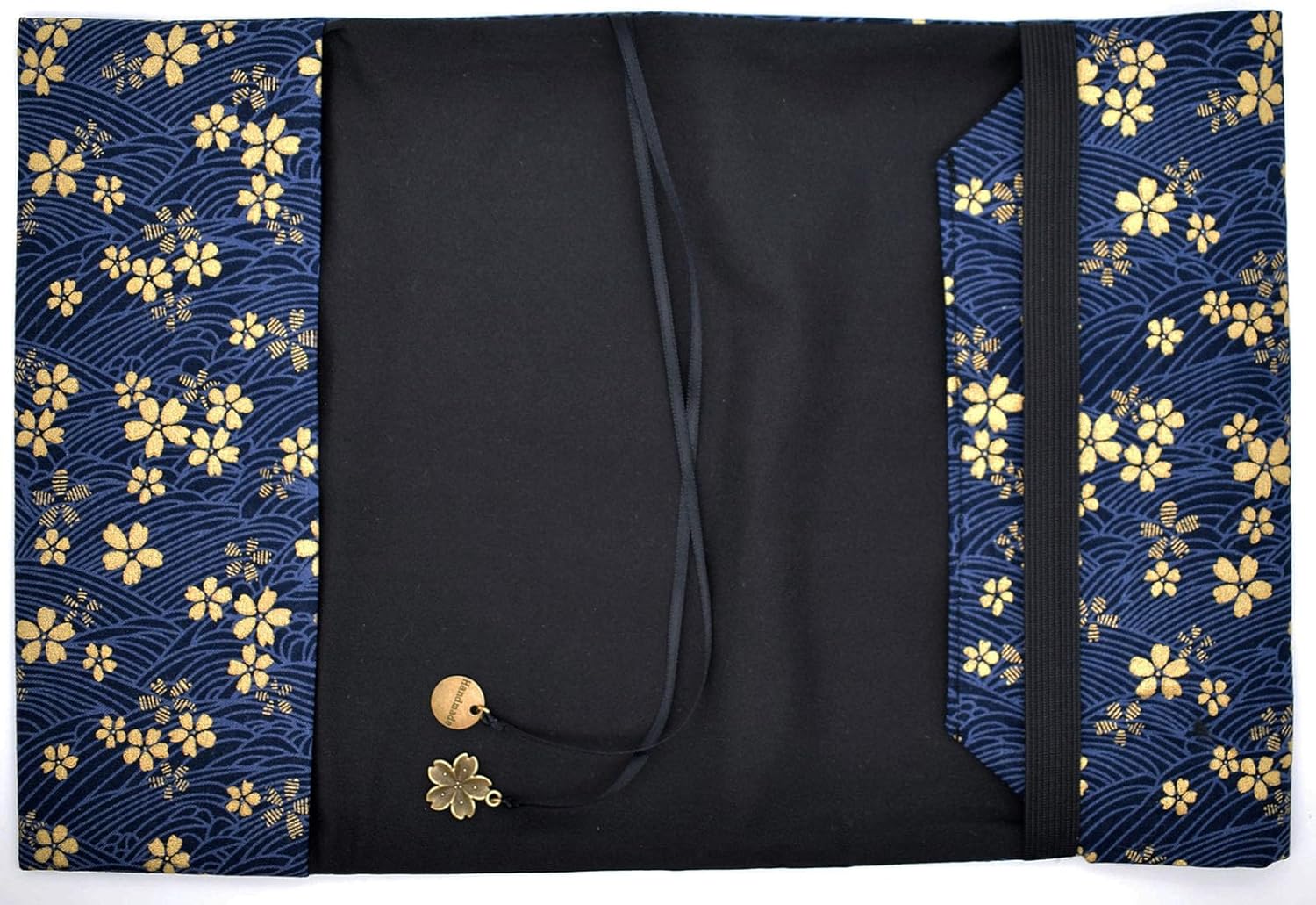 BLBMH A5 Book Cover for Paperbacks Adjustable Fabric Book Jacket Cover Protector Fit for 5.5x8.3 inch Hardcover Softcover Book Novels Notebook -Blue Cherry Blossoms 8.3in