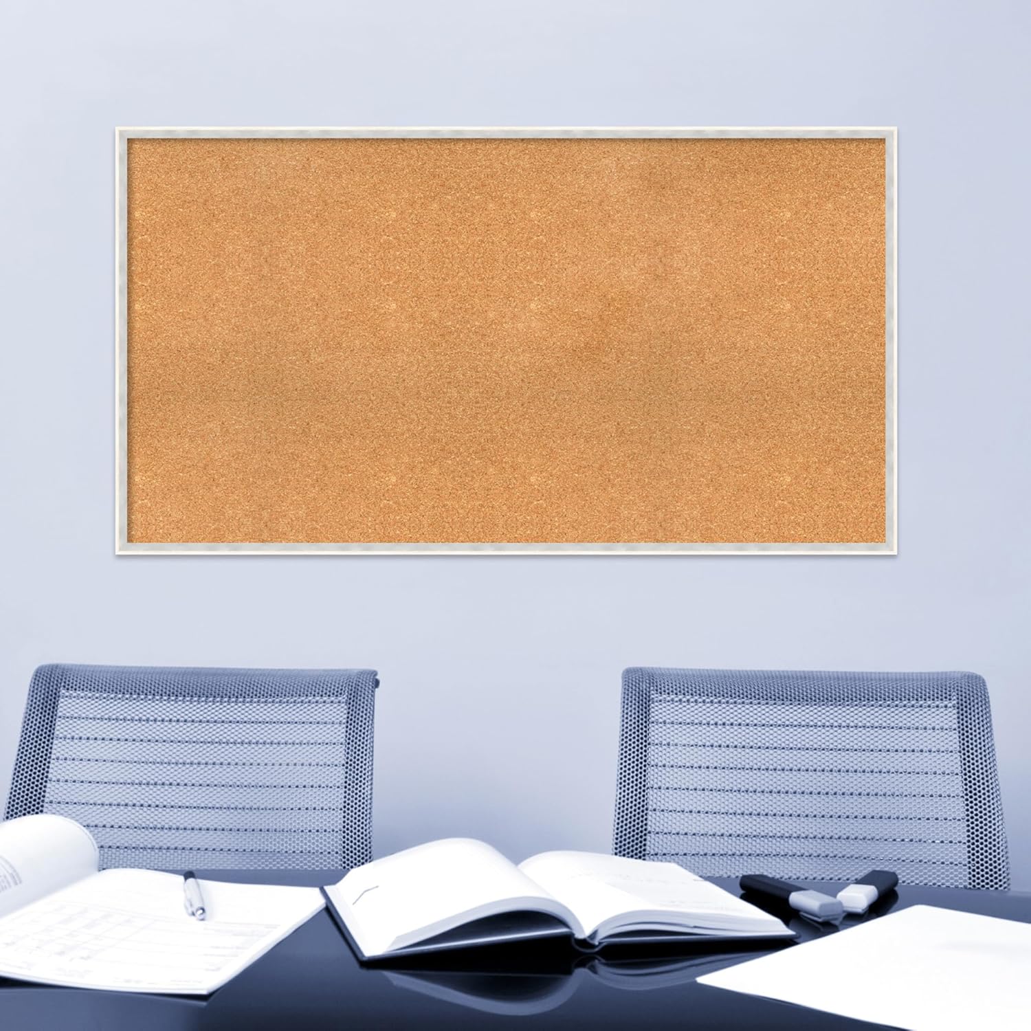 Amanti Art Natural Cork Board for Wall, 29x53 Vision Board with White Frame, Oversize Corkboard Office Decor for Home Organization, Modern Corkboard Pinboard to Display Items for Home Organization in