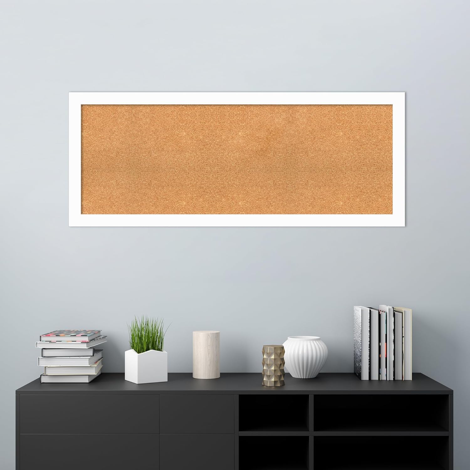 Amanti Art Natural Cork Board for Wall, 21x53 Vision Board with White Frame, Oversize Corkboard Office Decor for Home Organization, Casual Corkboard Pinboard to Display Items for Home Organization in
