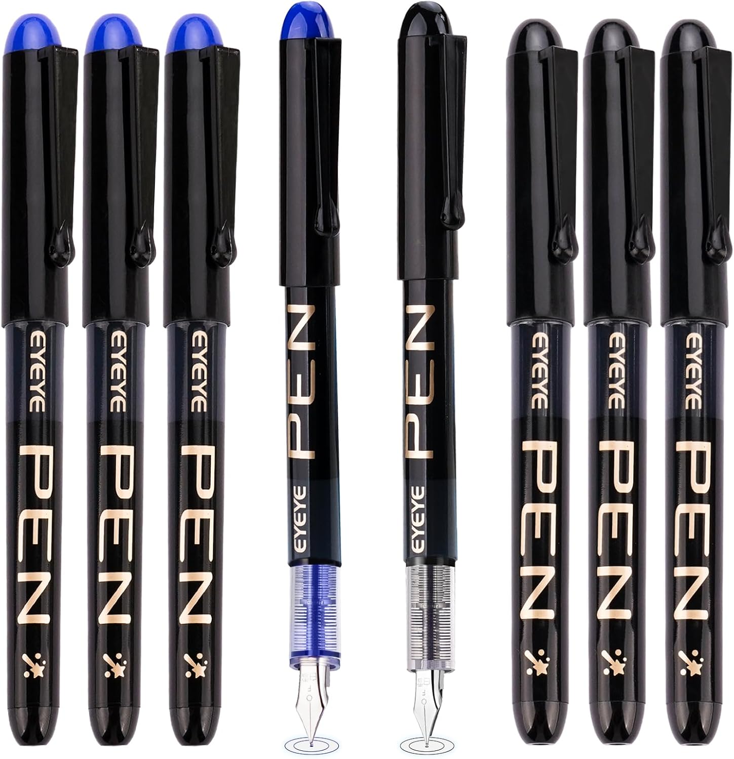 EYEYE Disposable Fountain Pens Fine Point, 4 Black 4 Blue Fountain Pens or Writing, Stainless Steel Nib, Smooth Writing for Calligraphy, Journaling, Drafting, Sketching, Doodling & Office Supplies