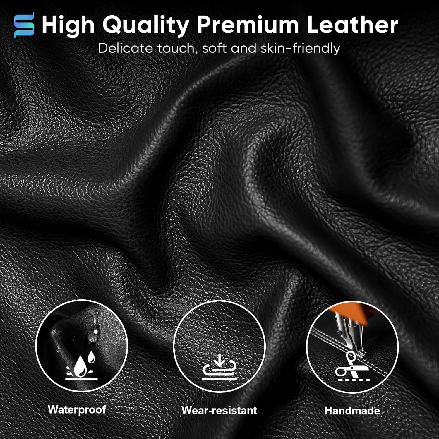 - High-Quality PU Leather:The ergonomic chair is made with a whole piece of PU leather, which is waterproof, skin-friendly, wear-resistant, non-fading and easy to clean. The leather is hand-cut and sewn, with added embroidered details for a unique and stylish touch