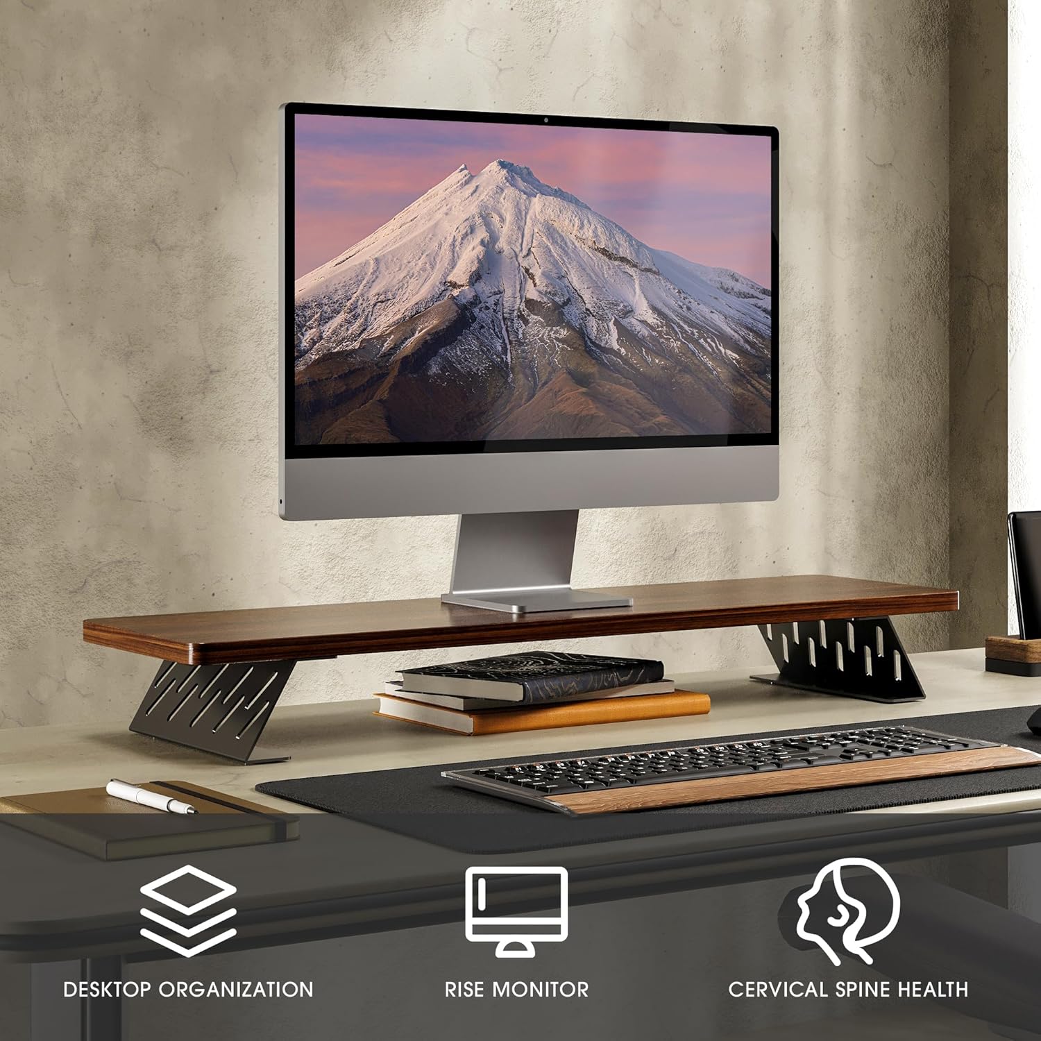 Fenge Monitor Stand Riser, Desk Top Shelf for 2 Monitors, Computer Stands for Desk, Wood & Steel Desktop Riser for Laptop, PC, Printer