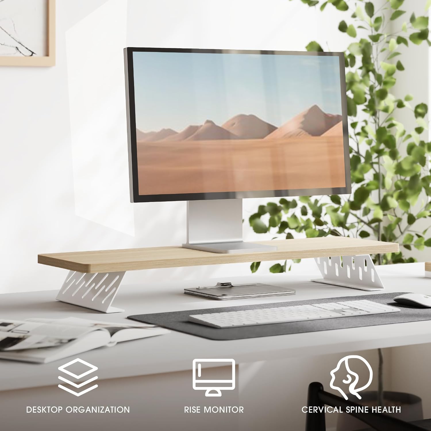 Fenge Monitor Stand Riser, Desk Top Shelf for 2 Monitors, Computer Stands for Desk, Wood & Steel Desktop Riser for Laptop, PC, Printer
