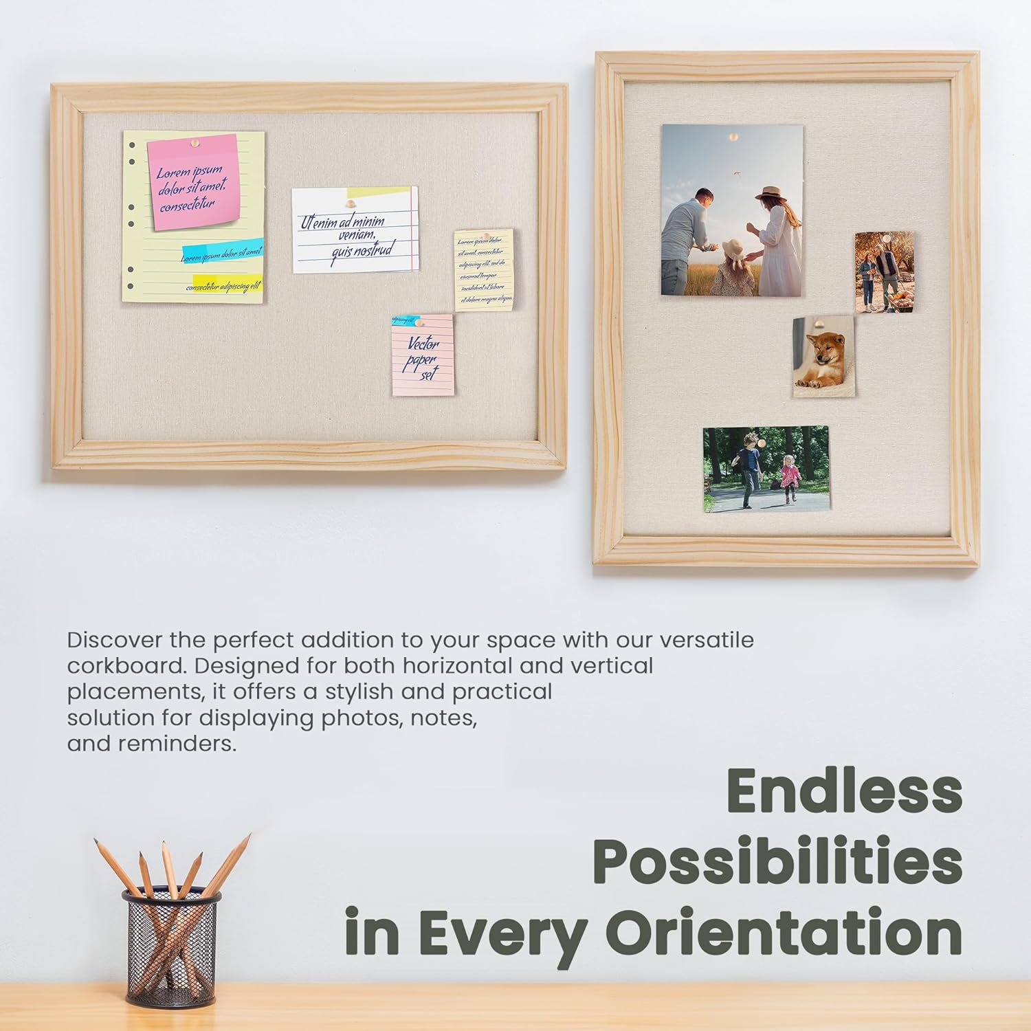 Bulletin Board Cork Board with Linen, 100% Wood Framed 18" x 24" Bulletin Board Decorations, Pin Boards for Walls, Wall Mounted Fabric Picture Board with 10 Pushpins for School, Home & Office, Natural