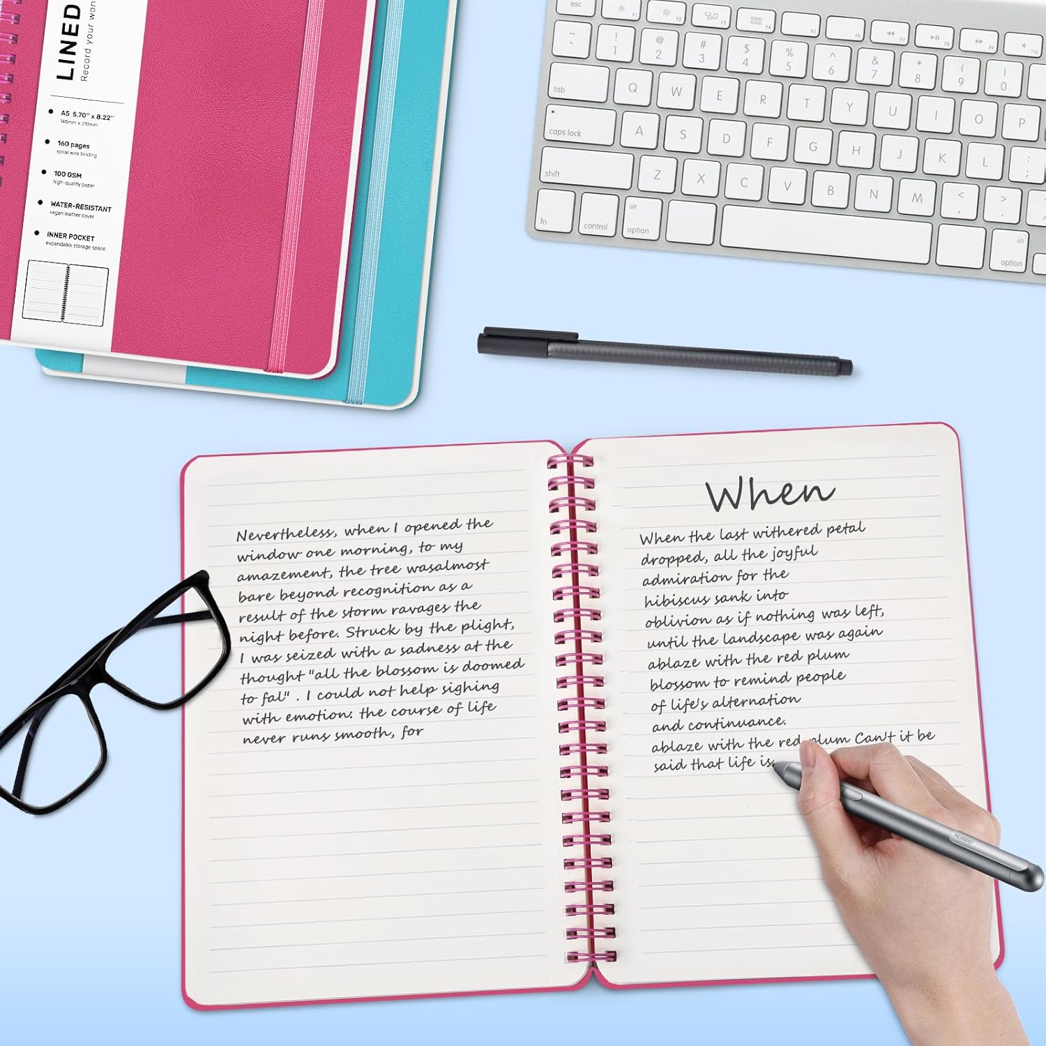 - 160 Pages A5 Notebook - This medium 5.7 x 8.2 inches A5 lined journal notebook features a waterproof brown faux leather cover, 8mm space classic college ruled notebook, total of 160 pages. The professional durable water-resistant plastic hard cover will protect your notebooks, which have oil-resistant and anti-bending properties, effectively protecting the internal paper of the journal and providing a comfortable writing surface.