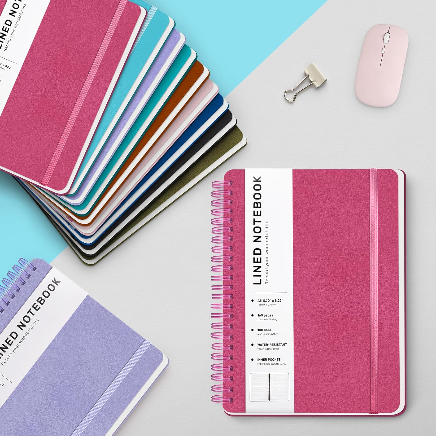 Lined Spiral Journal Notebook, A5 Hardcover Leather Notebook for Work, 5.7''×8.2'', 100GSM Thick Paper Spiral Bound Journaling Notebooks for Women & Men Office School Note Taking Business, Rose Red