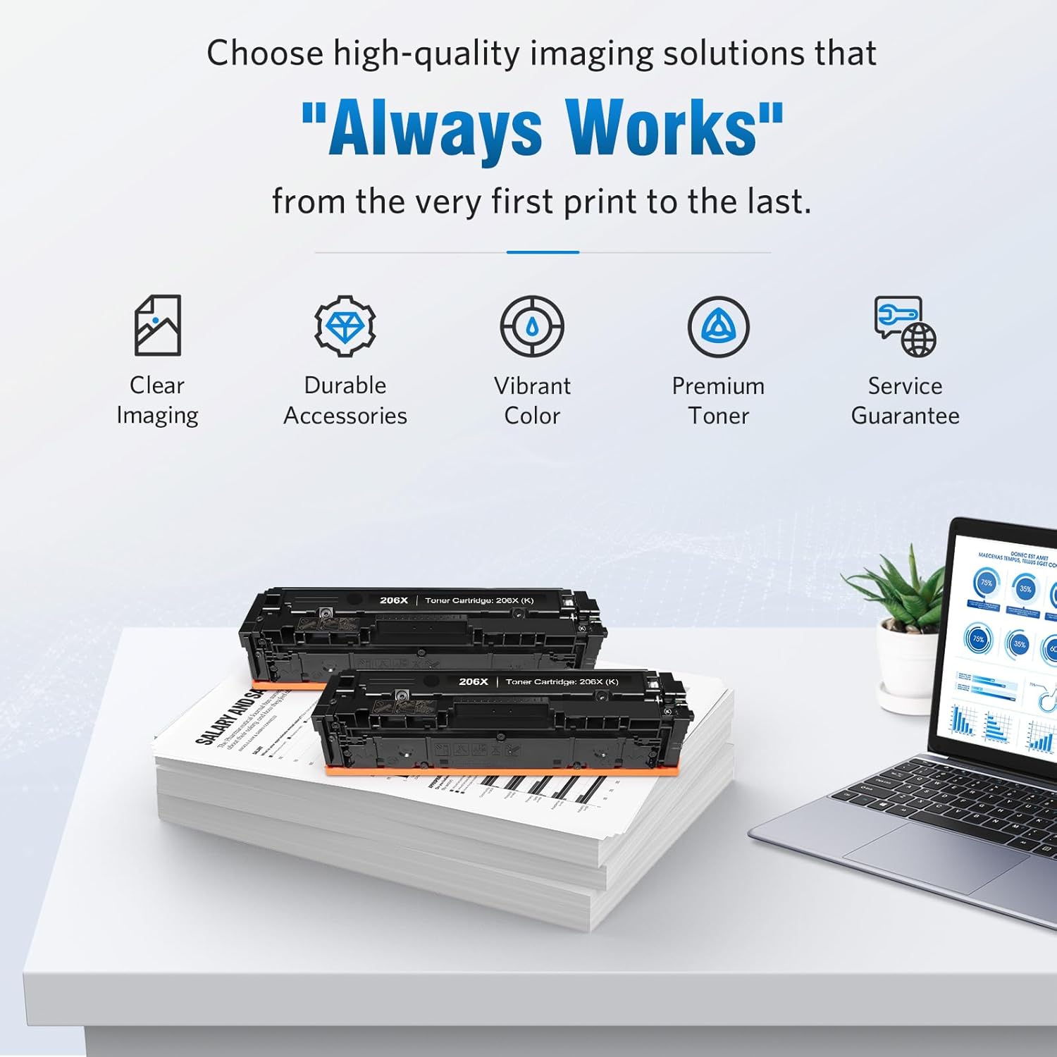 206X W2110X Black Toner Cartridge High Yield (with chip) Compatible Replacement for HP 206X 206A Laserjet Pro MFP M283fdw M283fdn M283cdw M255dw M255nw M282nw M283 M255 M282 Printer Toner (2-Pack)