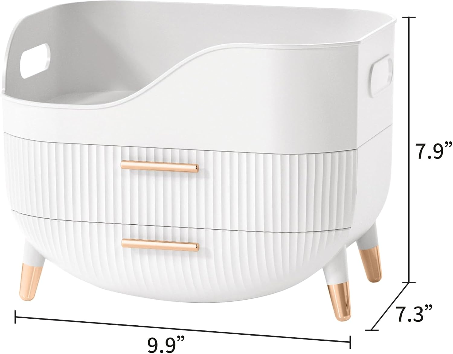 - Appearance and size:9.9âLĂ7.3âWĂ7.9âH,Large capacity cosmetic organizer with 2 drawers and top compartment,can organize tall bottles of skincare and cosmetics,Household containers for storing and organizing makeup