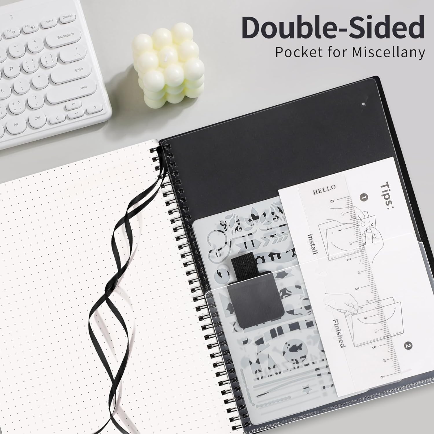 AHGXG Bullet Dotted Journal - Dot Grid Spiral Notebook 8.5" x 11", A4 Large Dotted Notebook, 100 GSM Thick Paper, Waterproof Plastic Cover Journals for Bullet Journaling, Sketching, Black