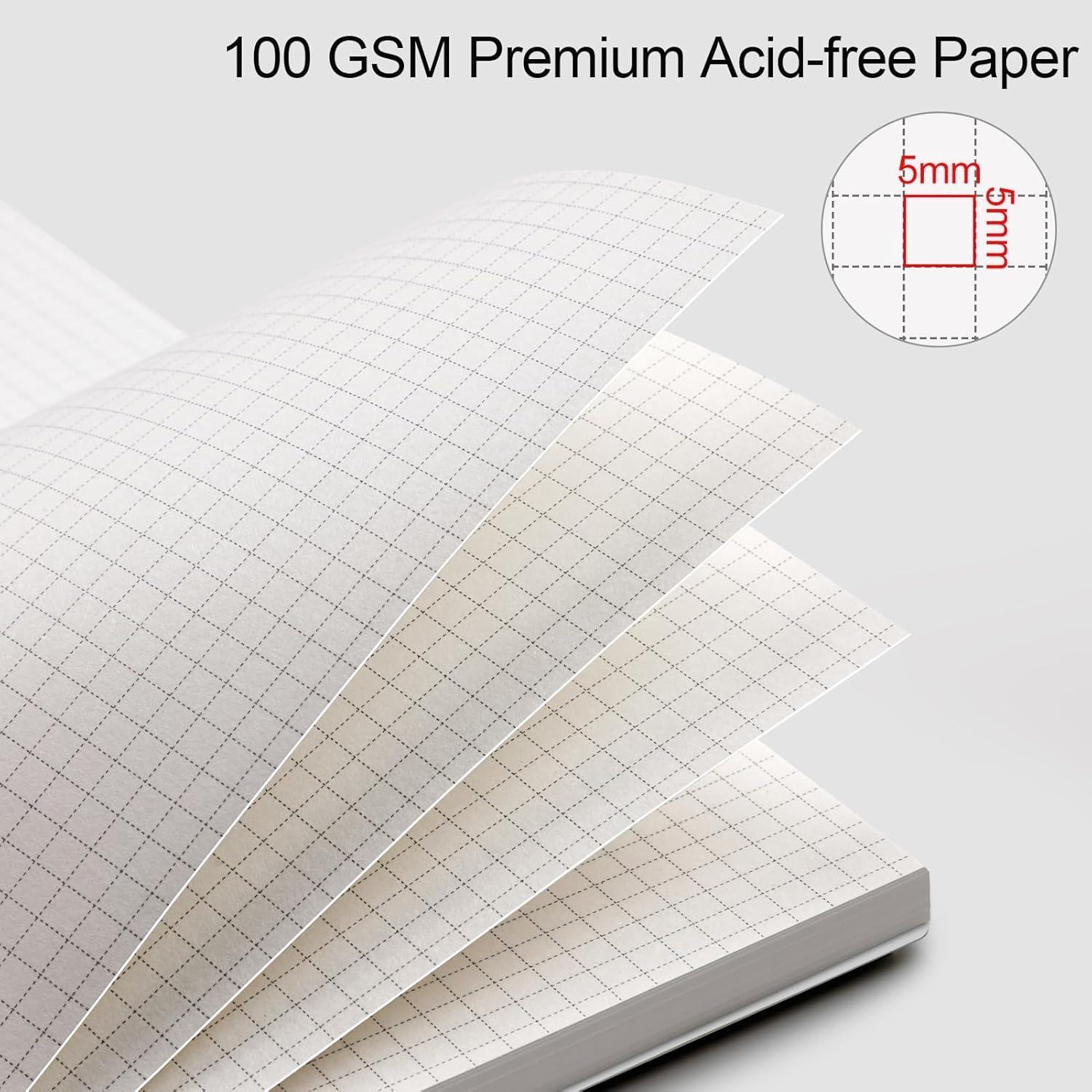 - 100 GSM PREMIUM PAPER: Our grid notebook adopts 100 GSM acid-free thick paper in a light ivory color, ink-friendly, and prevents ghosting and feathering, making it perfect for various pens, including fountain pens, pencils, ballpoint and gel