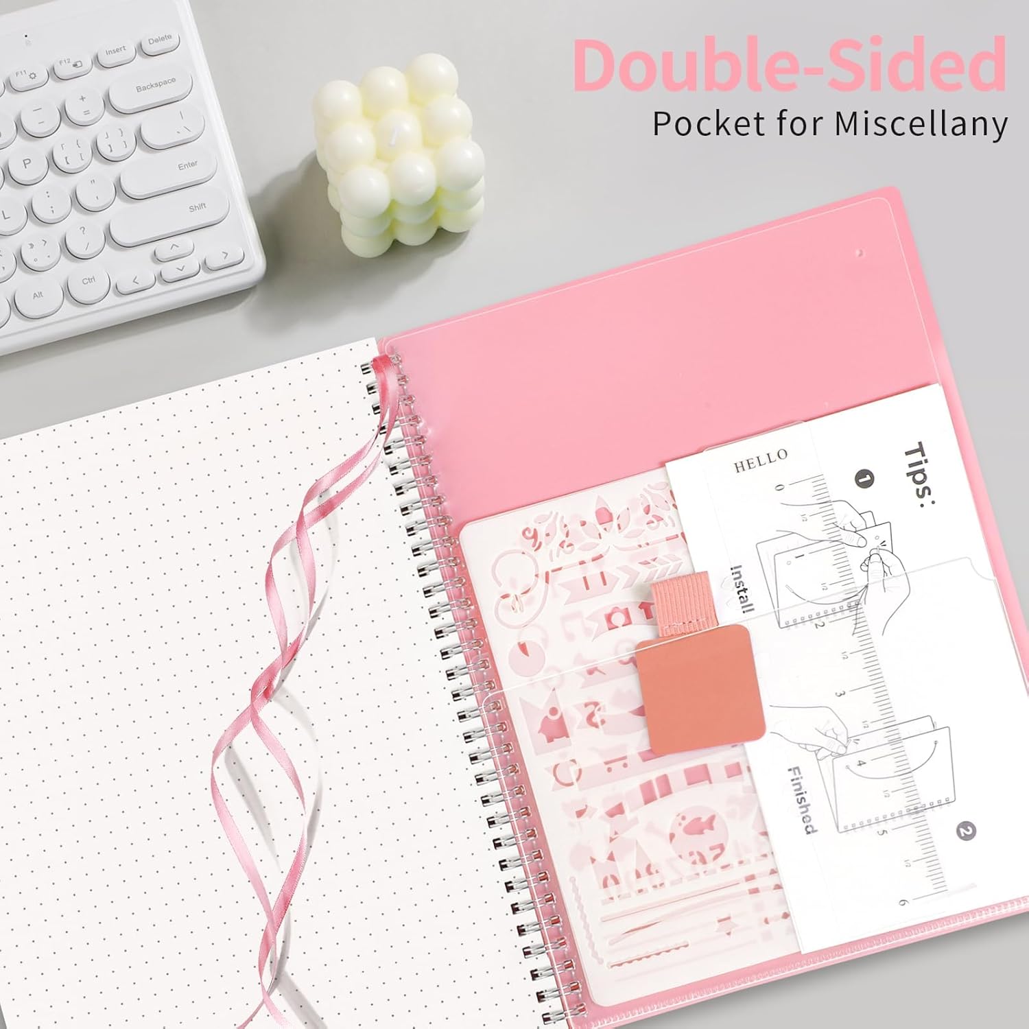 AHGXG Bullet Dotted Journal - Dot Grid Spiral Notebook 8.5" x 11", A4 Large Dotted Notebook, 100 GSM Thick Paper, Waterproof Plastic Cover Journals for Bullet Journaling, Sketching, Pink