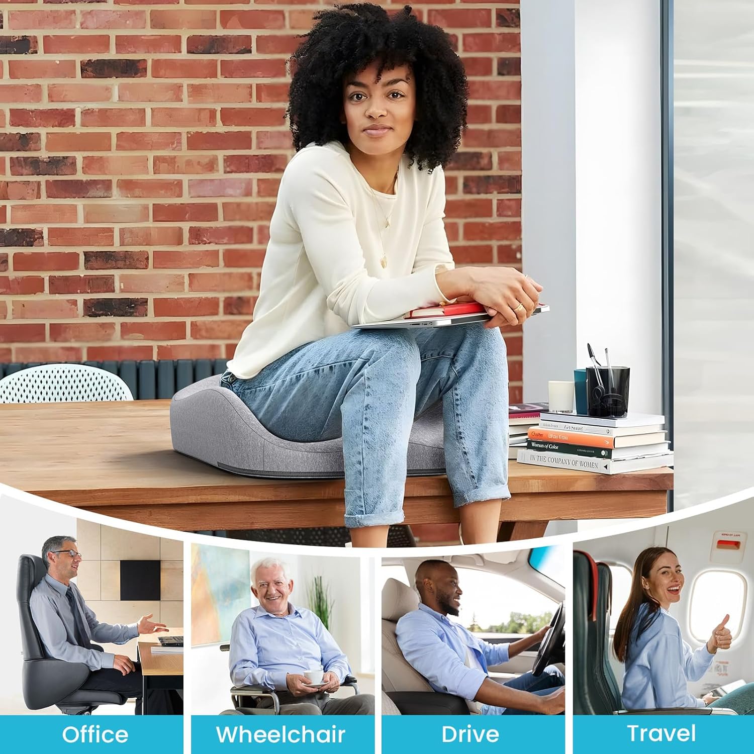 - ăErgonomic Design for Pain Reliefă The unique contoured shape reduces pressure on the lower back, hips, and coccyx, offering relief from sciatica and back pain while promoting better posture.