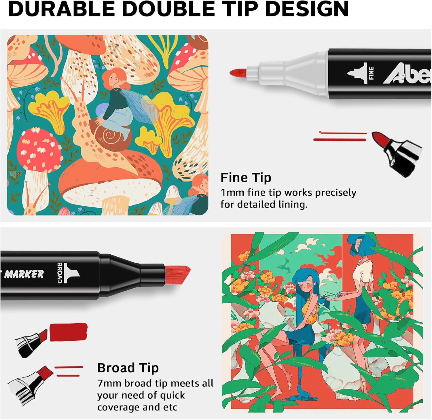 - Dual Tip Precision for Every Detail: Switch effortlessly between a 1-7mm chisel tip for bold strokes and a 0.5-2mm fine bullet tip for intricate lines. Ideal for artists, students, and hobbyists, these artist markers handle everything from adult coloring book markers designs to school posters with studio-grade control.