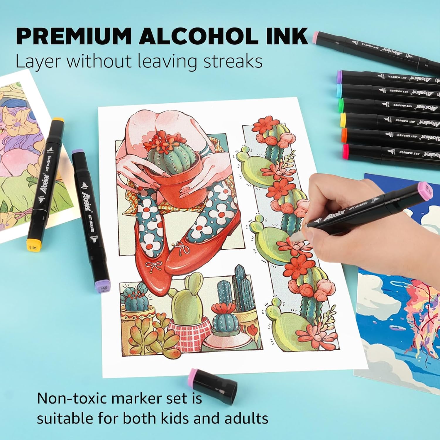 - Vibrant Blendable Colors: Unleash your creativity with 204 alcohol markers featuring ultra-smooth alcohol-based ink that blends seamlessly. Perfect for adult coloring books, these no-bleeding coloring markers deliver rich, fade-resistant hues for professional illustrations, manga art, or casual sketching.