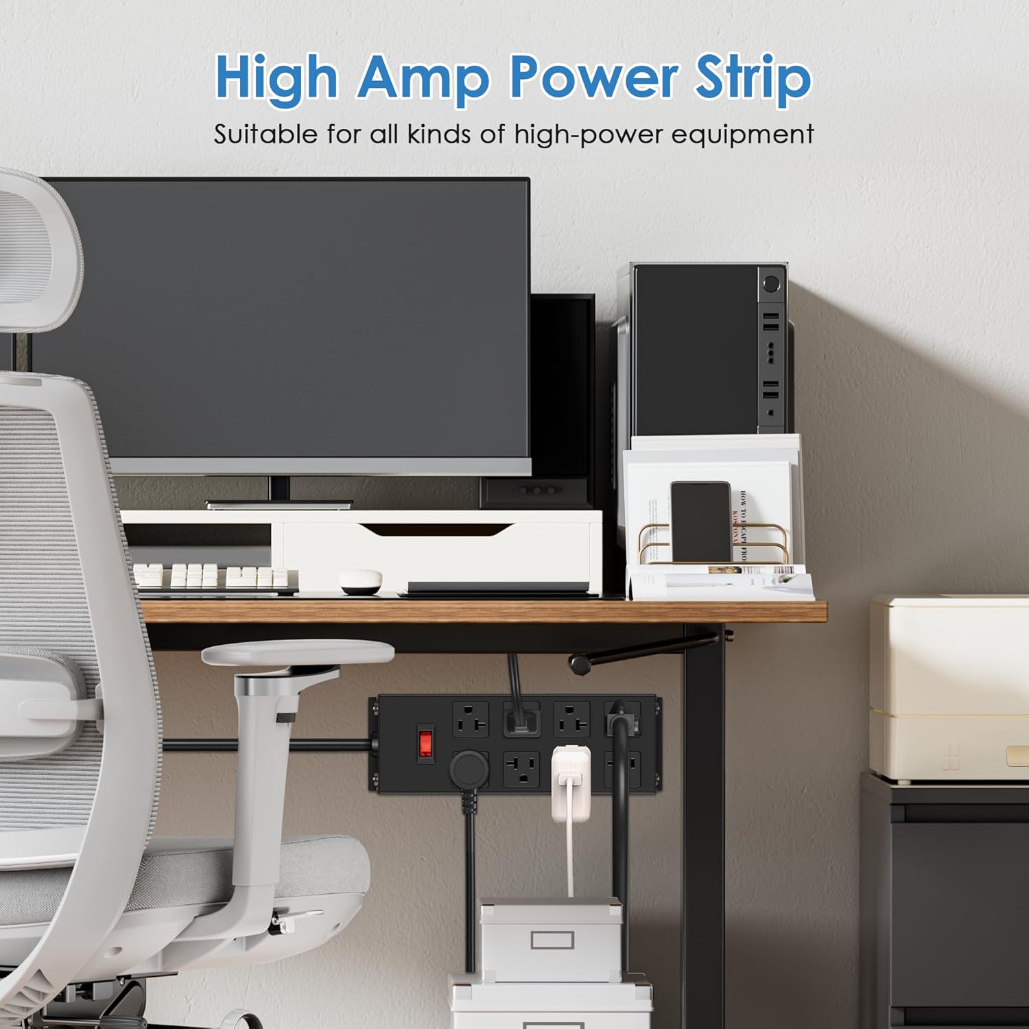 - Built-in 20A circuit breaker provided superior protection for everyday use in professional work areas and home offices, protecting computers, and other electronic devices from damaging surges, voltage fluctuations and noise spikes.
