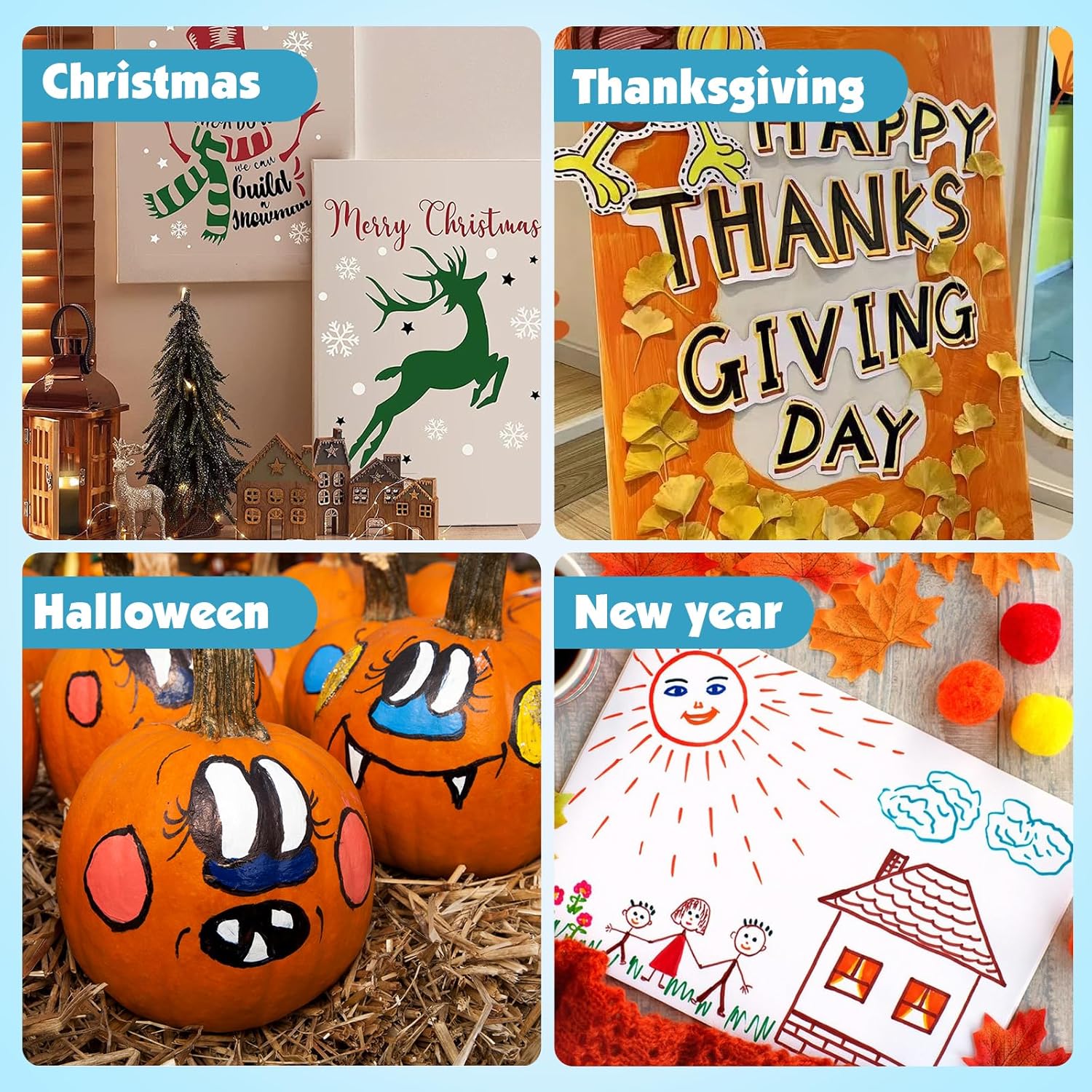 - 【DIY Gift】The bright colors make our acrylic pen works more vivid and interesting, making them perfect for DIY gifts.You can use it to design your bullet diary, plan book, scrapbook, Christmas card, birthday gift, or any DIY craft project. It is also suitable for creating various festivals, such as Halloween, Thanksgiving, Christmas, etc