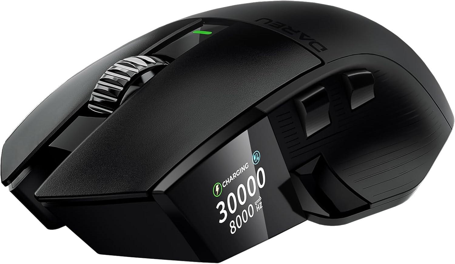 DAREU A980PROMAX Wireless Gaming Mouse-4K/8K Polling-30K DPI Optical Sensor-0.85' TFT Color Display-Magnesium Alloy Buttons-2.4G Wireless/BT/USB Connectivity-Nano Receiver Included