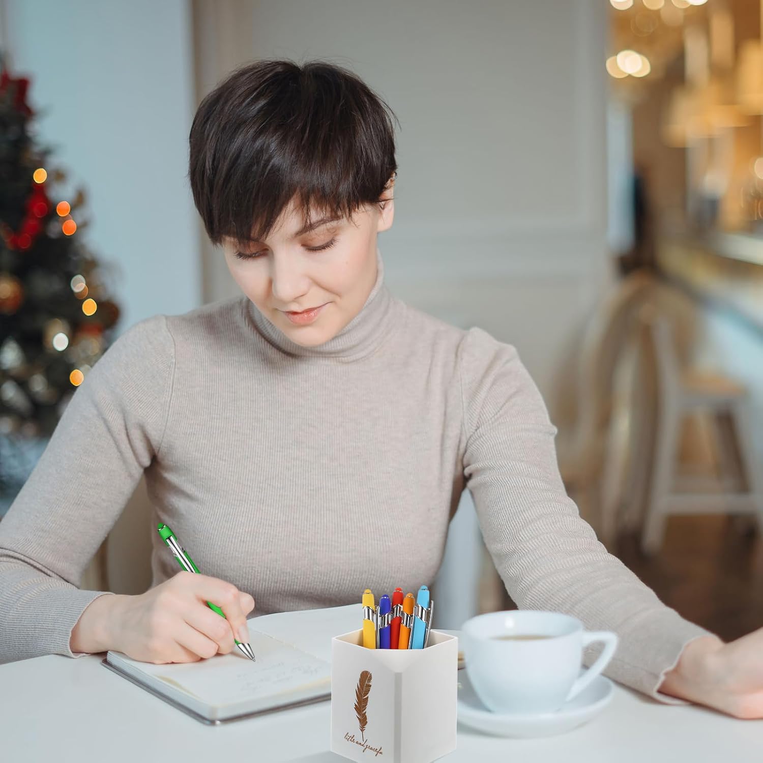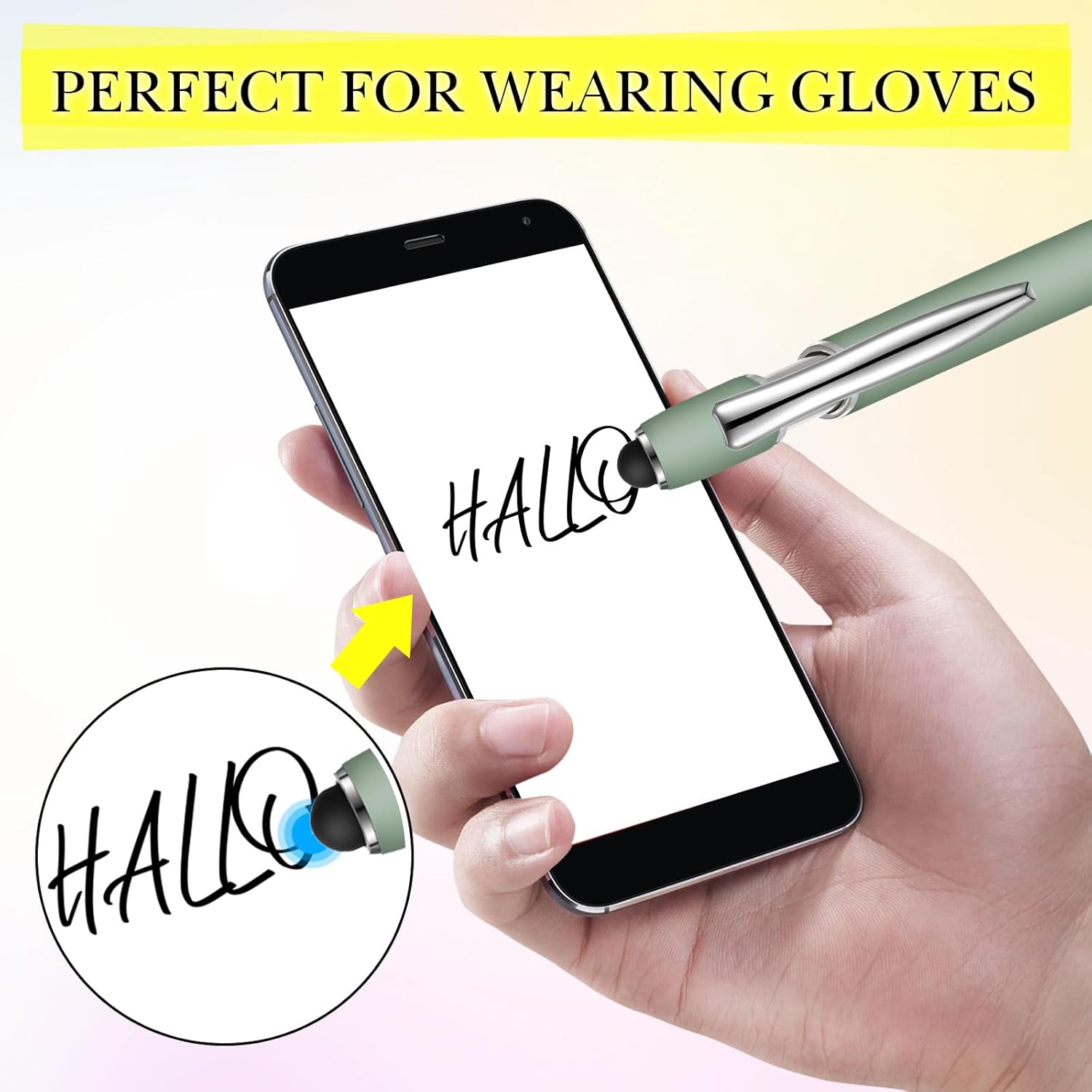 - Modern nice-touch metal pens: these ballpoint pens have a responsive click action, bright finished barrel, matching colored capacitive stylus tip, and ultra-smooth black ink