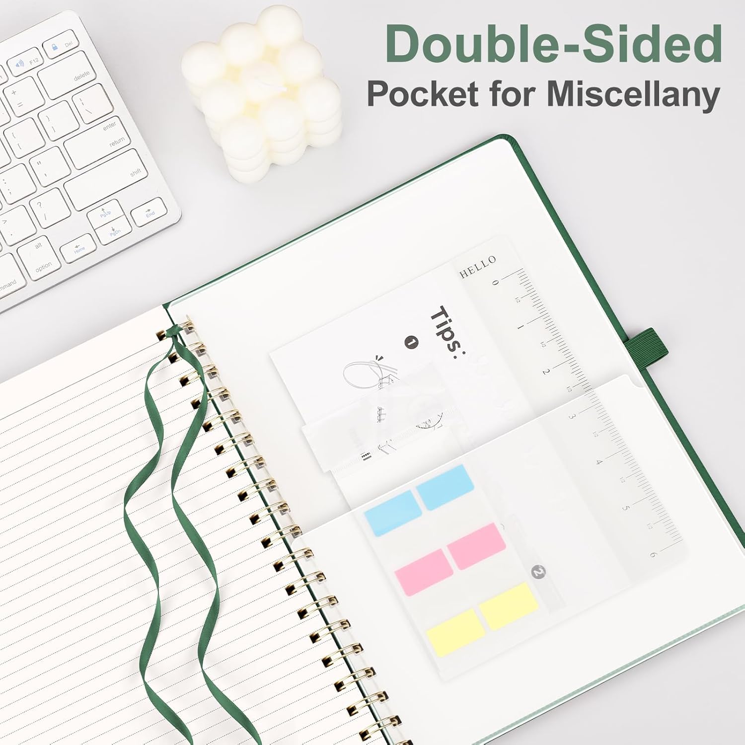 - HARDCOVER LEATHER SPIRAL NOTEBOOK: This spiral notebook features a durable, waterproof vegan leather cover that protects your notes from damage. The double-wire binding allows for easy folding and 180° lays flat for convenient writing