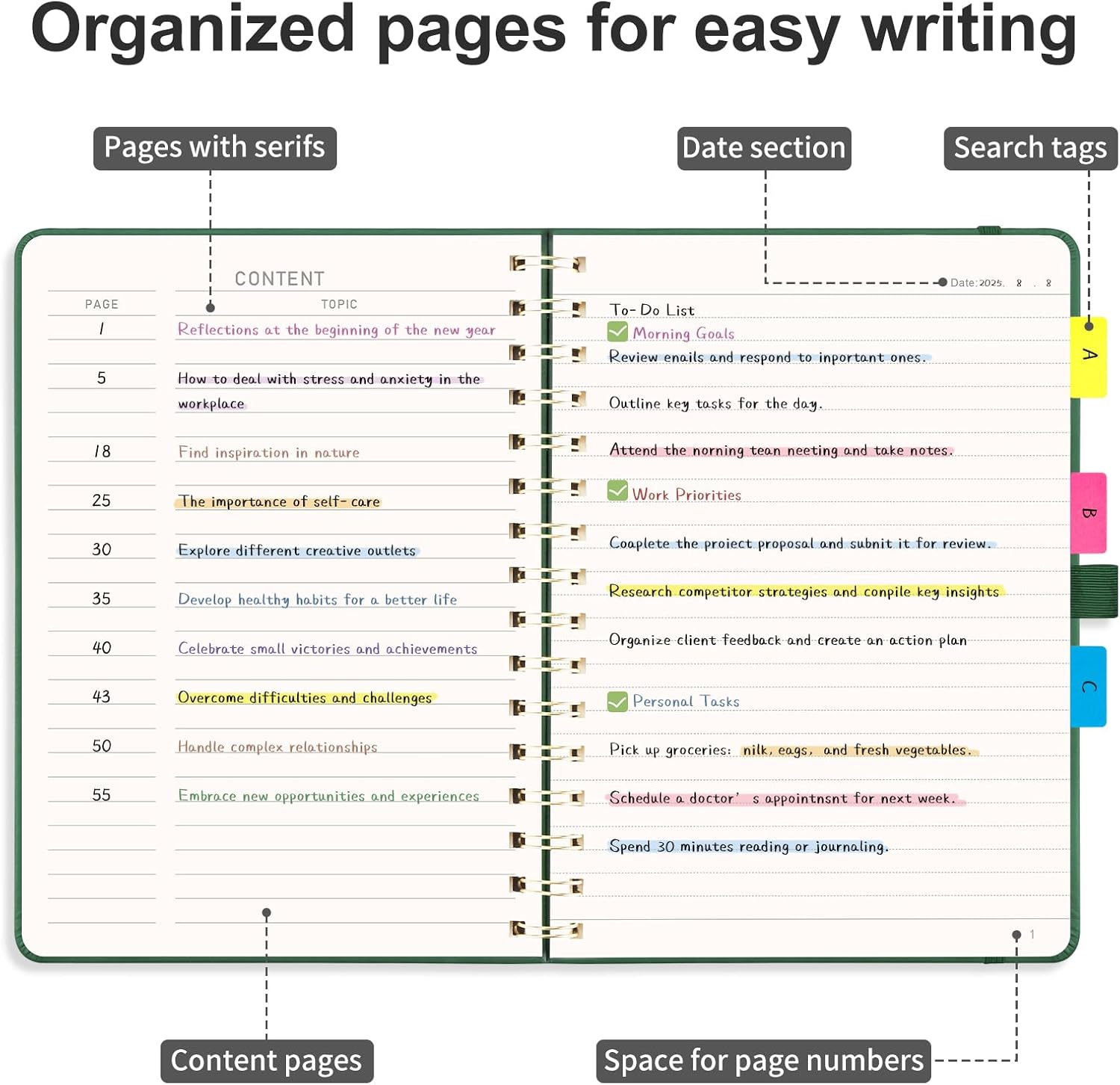 - ORGANIZED AND PRACTICAL NOTEBOOK: Our lined spiral notebook features 140 numbered pages and 4-page blank table of contents. In a medium A5 size 5.7" × 8.3", providing ample writing space while remaining lightweight and easy to carry