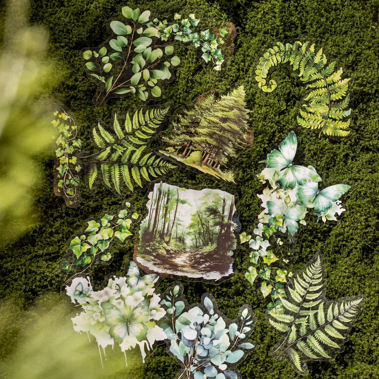 120Pcs Forest PET Scrapbook Stickers Botanical Designs for Scrapbooking Waterproof Journaling Supplies Junk Journal Ephemera with Storage Organizer