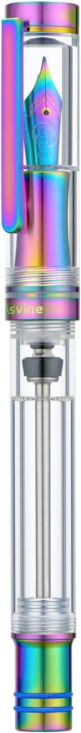 Asvine V200 Titanium Fountain Pen Vacuum Filling, Rainbow Iridium Extra Fine Nib Clear Demonstrator Acrylic with Pen Case and Wrench