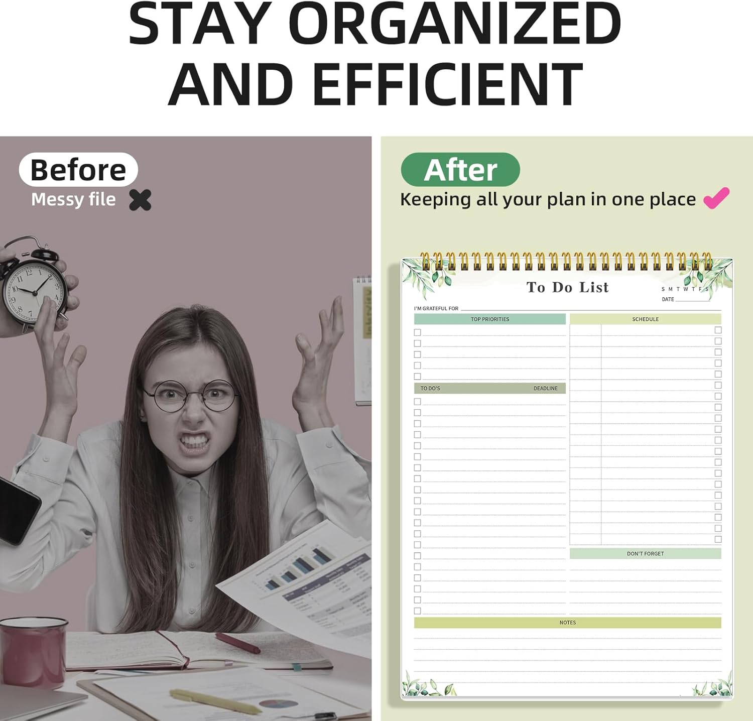 - 【Keep On Track】52 sheets weekly planner notepad cover a year of planning with an A4 (8.5"x11.4" ) size, which provides enough space to write down everything you need to do. Undated to do list planner means you can use it as often or as little as you want without "wasting" days like the set day planner. Say goodbye to feeling overwhelmed and hello to a more organized and productive you!