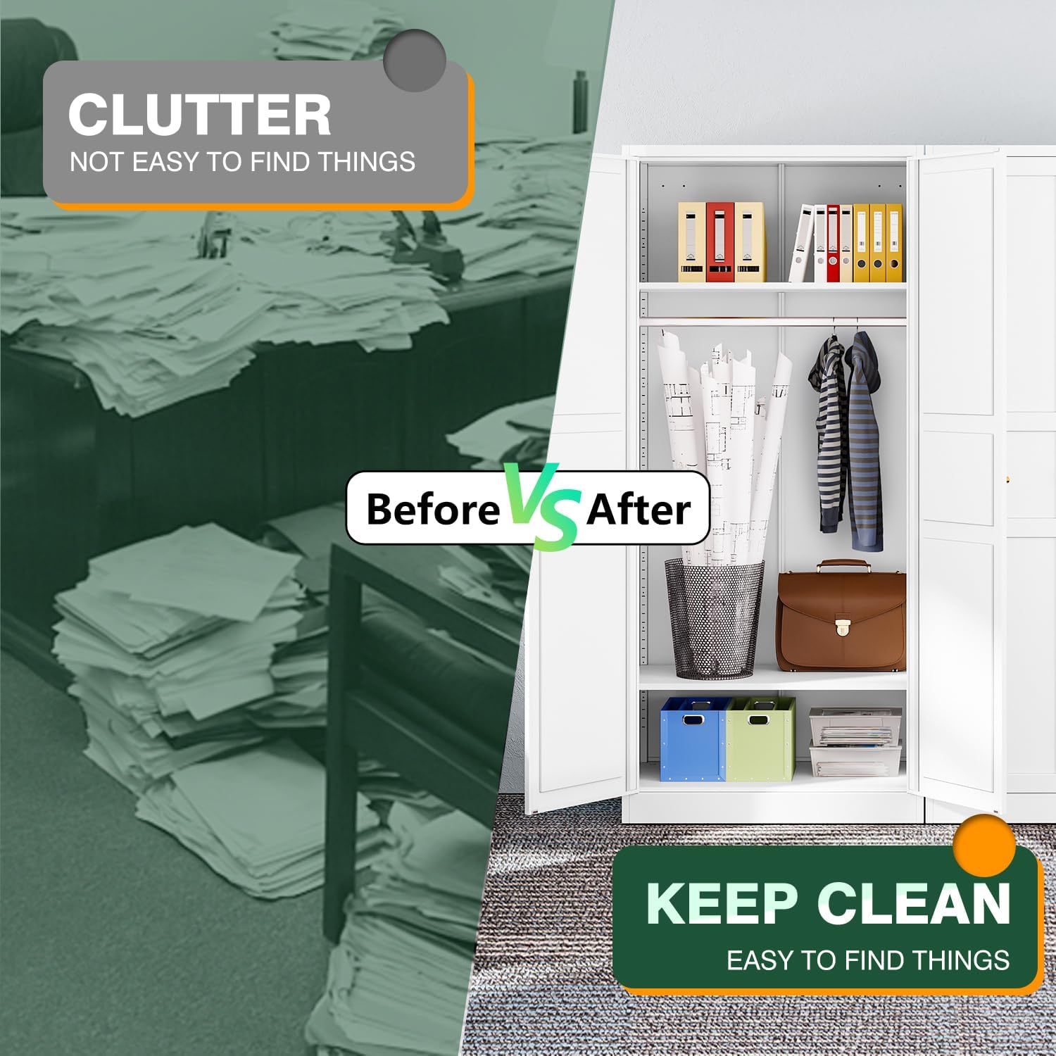 Letaya Wardrobe Armoire Closet,72" H Metal Storage Cabinet with Adjustable Shelves and Hanging Rod,Bedroom Armoire Cabinet Clothes Organizer (White)