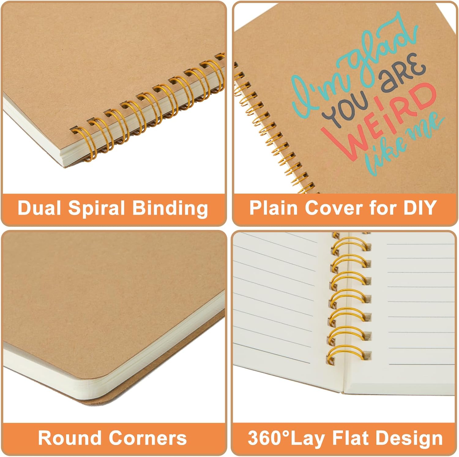 - 【Premium Materials】Brown spiral bound notebook with 350 grams soft kraft paper cover, you can freely decorate the cover. The lined notebook paper is made of 100 grams of thick paper, reducing the chance of ink bleed through, smooth writing