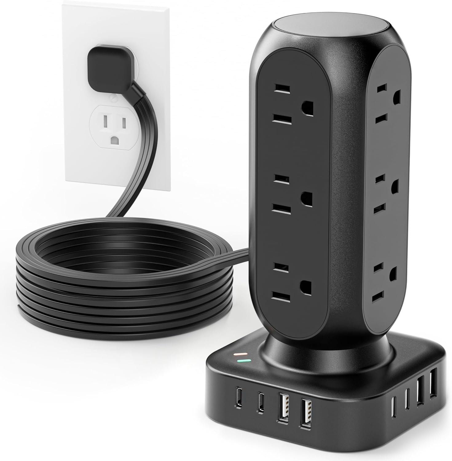 - 【20 IN 1 Power Strip Tower with USB】- This vertical power strip with USB ports features 12 AC outlets and 8 smart-charging USB ports(4 USB-C). It can charge 20 devices simultaneously without blocking, keep your desktop organized, widely use in home/office/dorm room. (Note: Please do not exceed the rated power 1875W ).