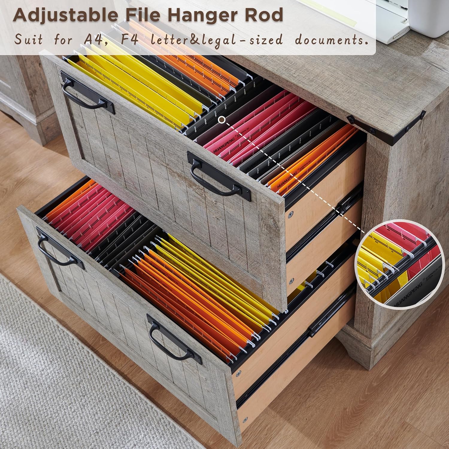 - Sturdy Construction: The filing cabinets are produced from high-quality engineered wood and are built to endure daily application and provide lasting storage. Designed with the customer in the forefront of the mind, this 2-drawer farmhouse file cabinet combines functionality and aesthetics. Tabletop can hold up to 50lbs.