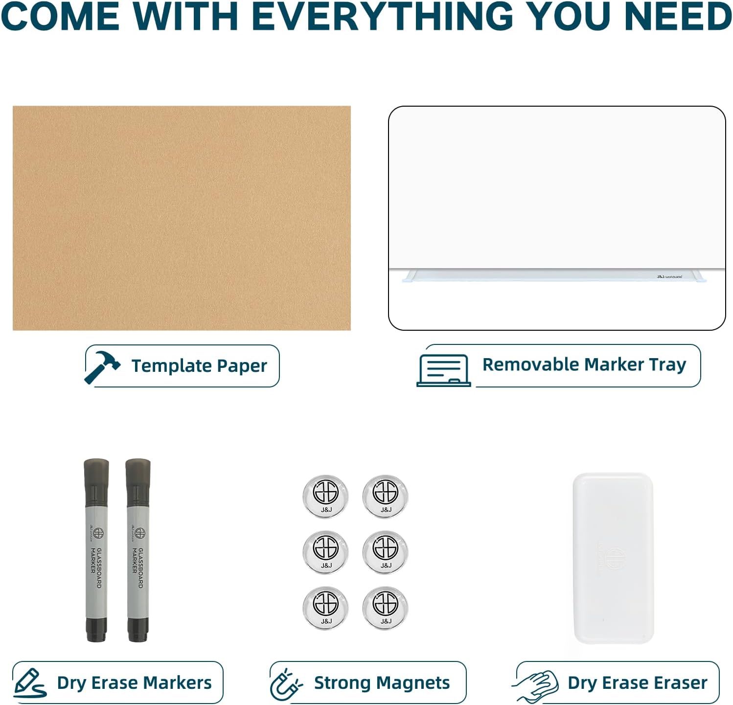 - 【ACCESSORIES INCLUDED】: The package includes 2 dry erase markers, 6 magnets, 1 glass whiteboard eraser and 1 removable aluminium marker tray for mounting. One-stop shopping. It's a great gift idea for your workmate, boss or spouse which can enhance the office/ house atmosphere