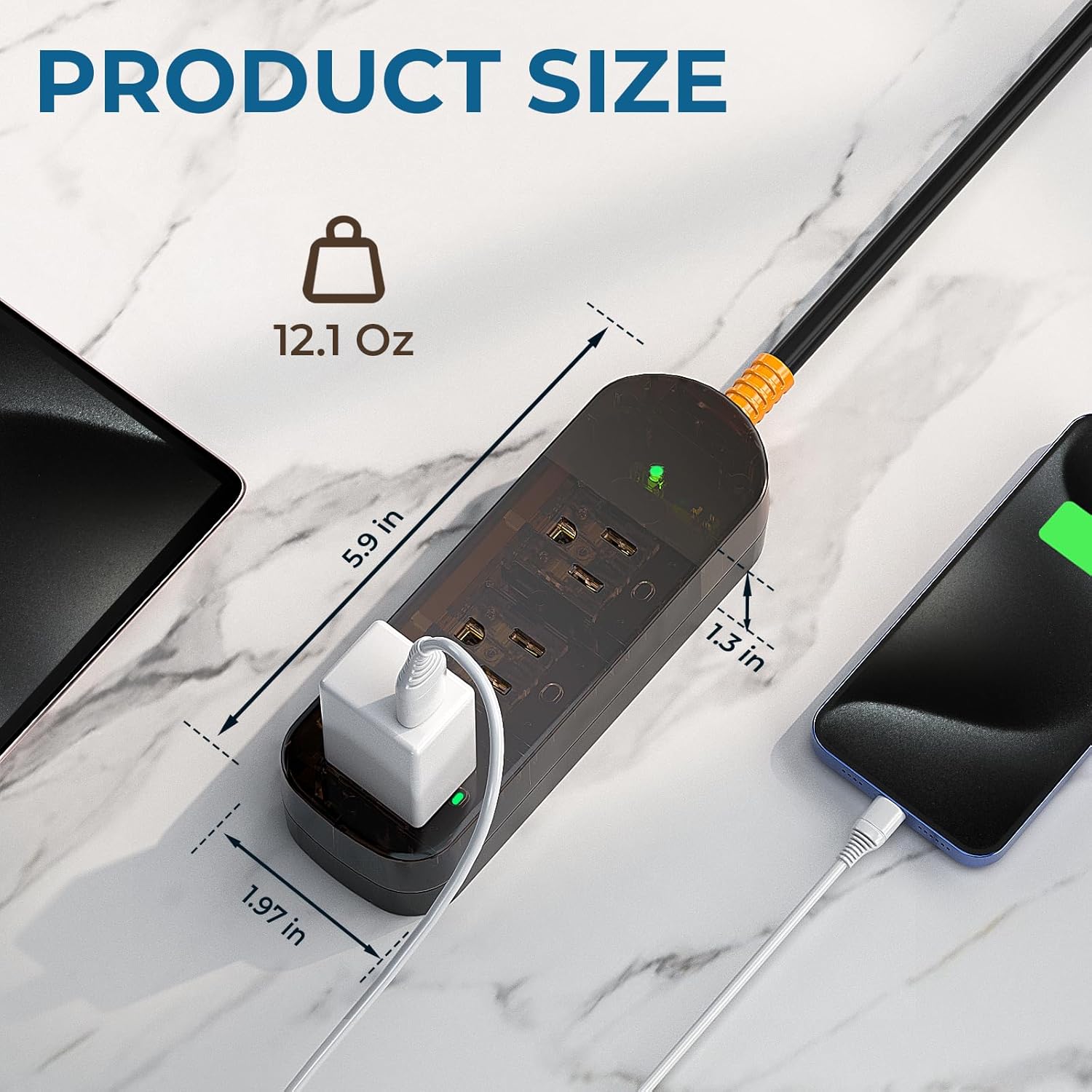 - Surge Protector power strip+Transparent Design: Surge Protector Receptacle protects your appliances from lightning storms or spikes in current. With transparent design, you can clearly see the sturdy internal components of this outlet, applying PBT extra hard material, H65 brass, C5191 Phosphor Bronze modular mounting pads, and environmentally friendly flame-retardant PC shells with a flame retardant rating of 1385°F, so it is more durable, and you can feel safe to use it!