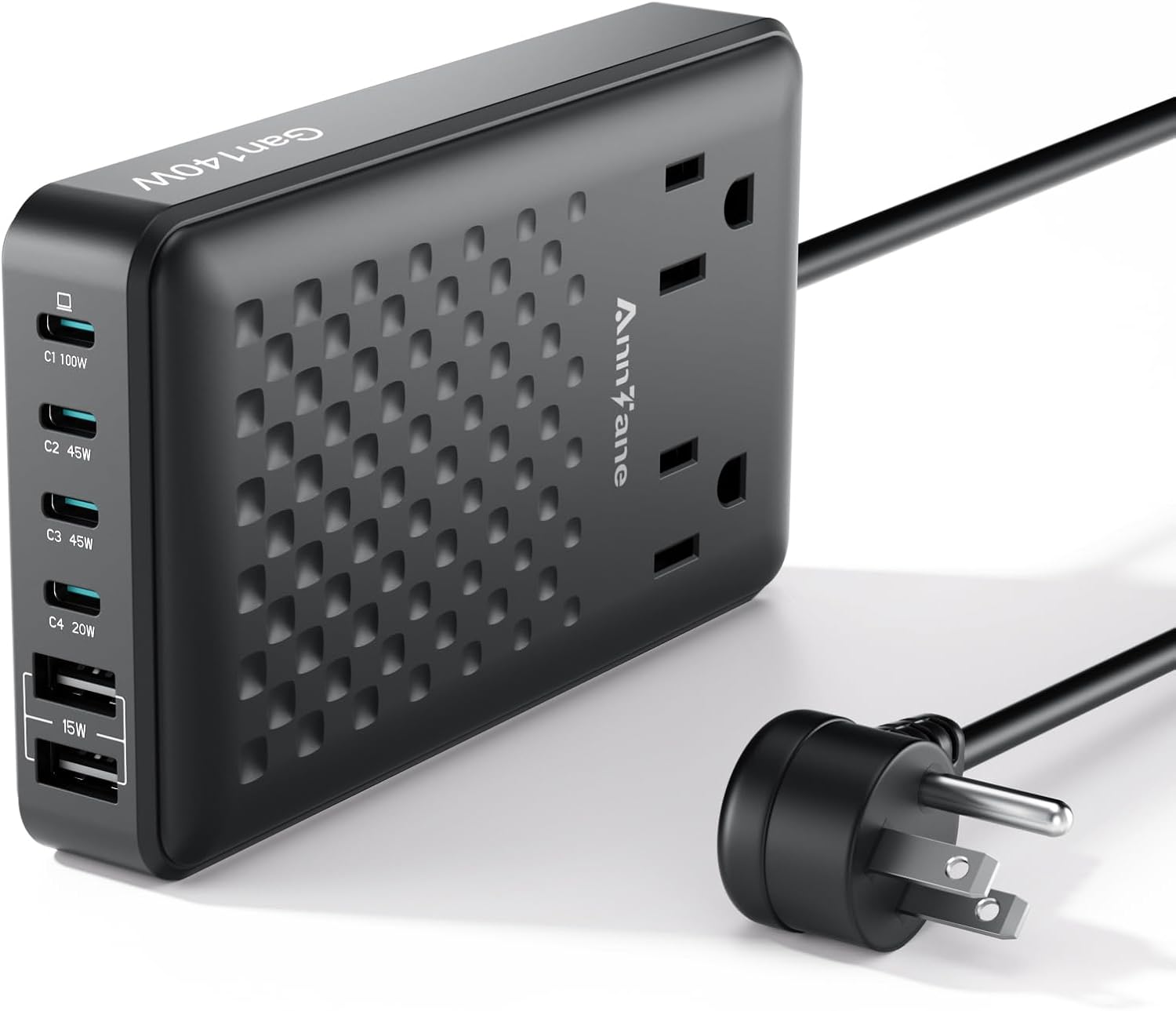 - 【8 in 1 Charging Station】This usb c charger with 4 USB-C ports (1 x 65W, 2 x 45W, 1 x 20W), 2 USB-A ports (2 x 15W) and 2 AC power outlets(65W). It is charging station for multiple devices that can power up to 8 devices at the same time.
