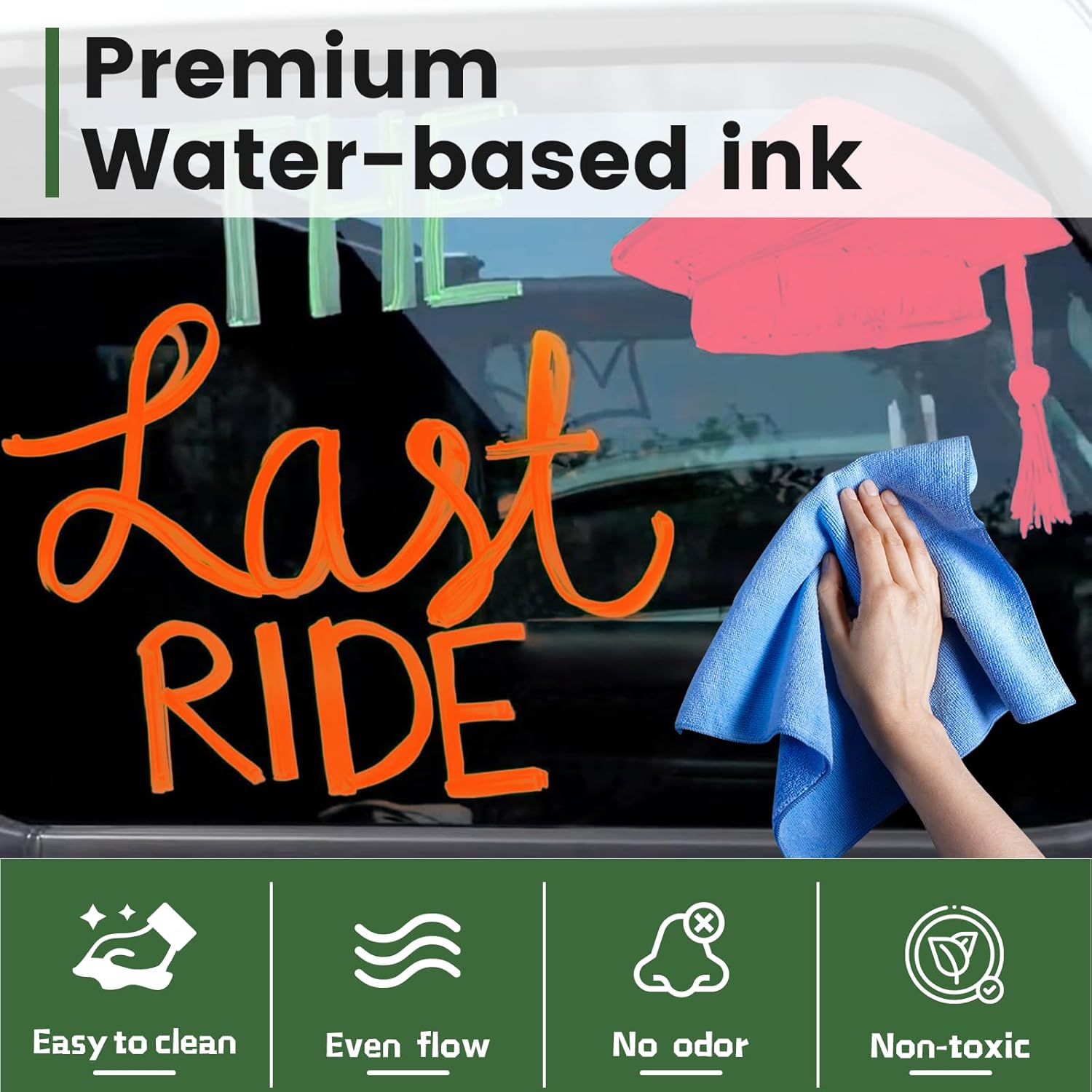 - EASY TO USE & CLEAN: Our liquid chalk markers erasable are designed for effortless application and clean-up. To use, simply put the cap back on, shake the marker thoroughly, press the tip to saturate it with ink, and test it on paper. Erasing is equally straightforward, as our dry & wet erase markers wipe clean with a dry or damp cloth, leaving no residue.