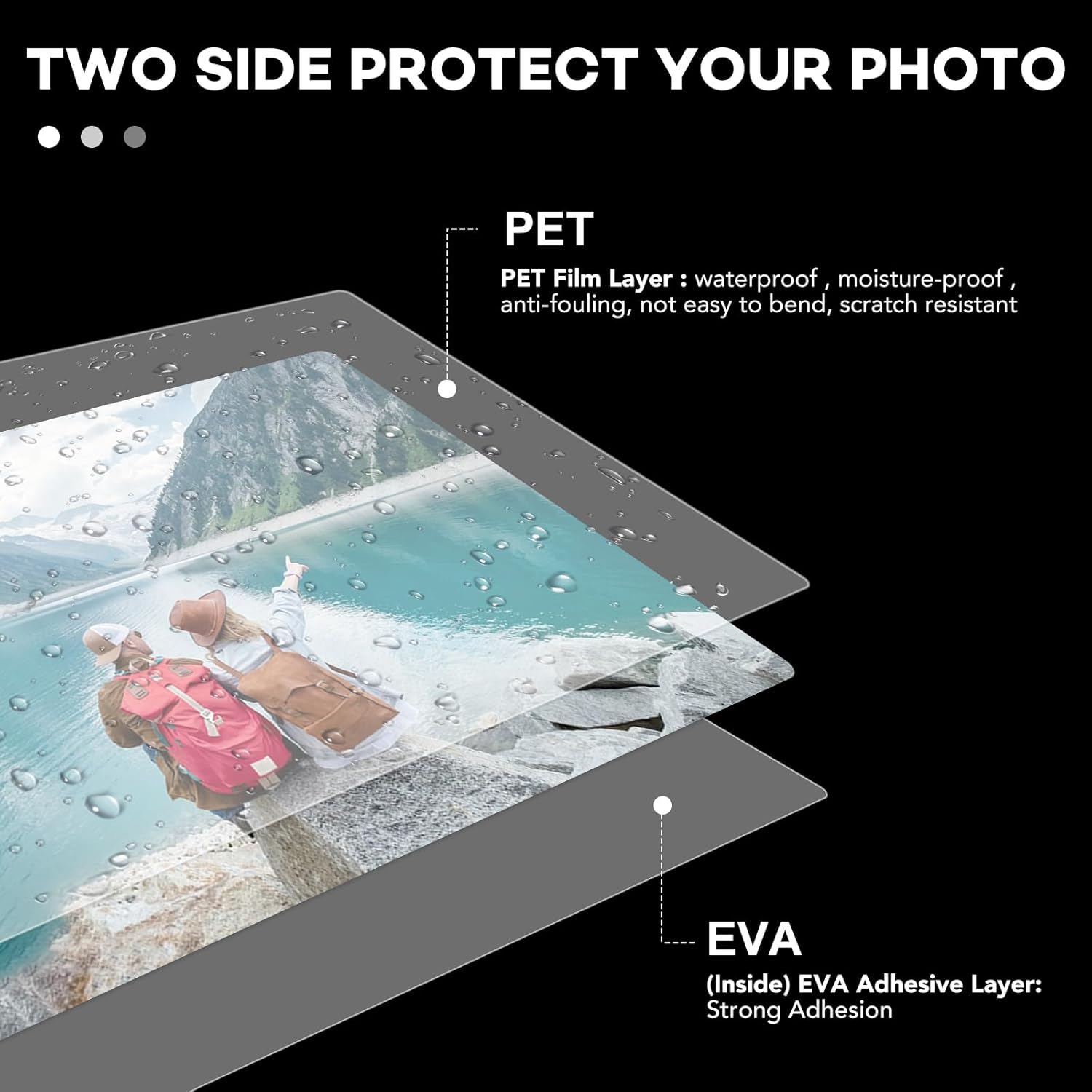 - Premium Material: Crystal clear, glossy sheen, sturdy and Premium material. Laceration resistant, double coating, anti-stain, sturdy and waterproof, protect your document from scratching