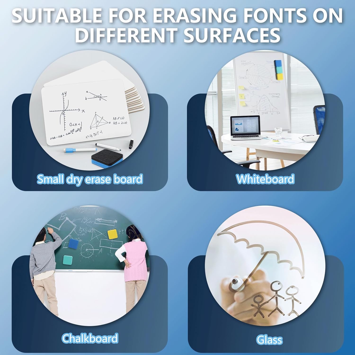 - Efficient Cleaning: Designed for quick and easy use, these mini dry erase erasers require just a light swipe to clean whiteboards, calendars, lapboards, memo pads, and other surfaces like melamine, porcelain, and glass.