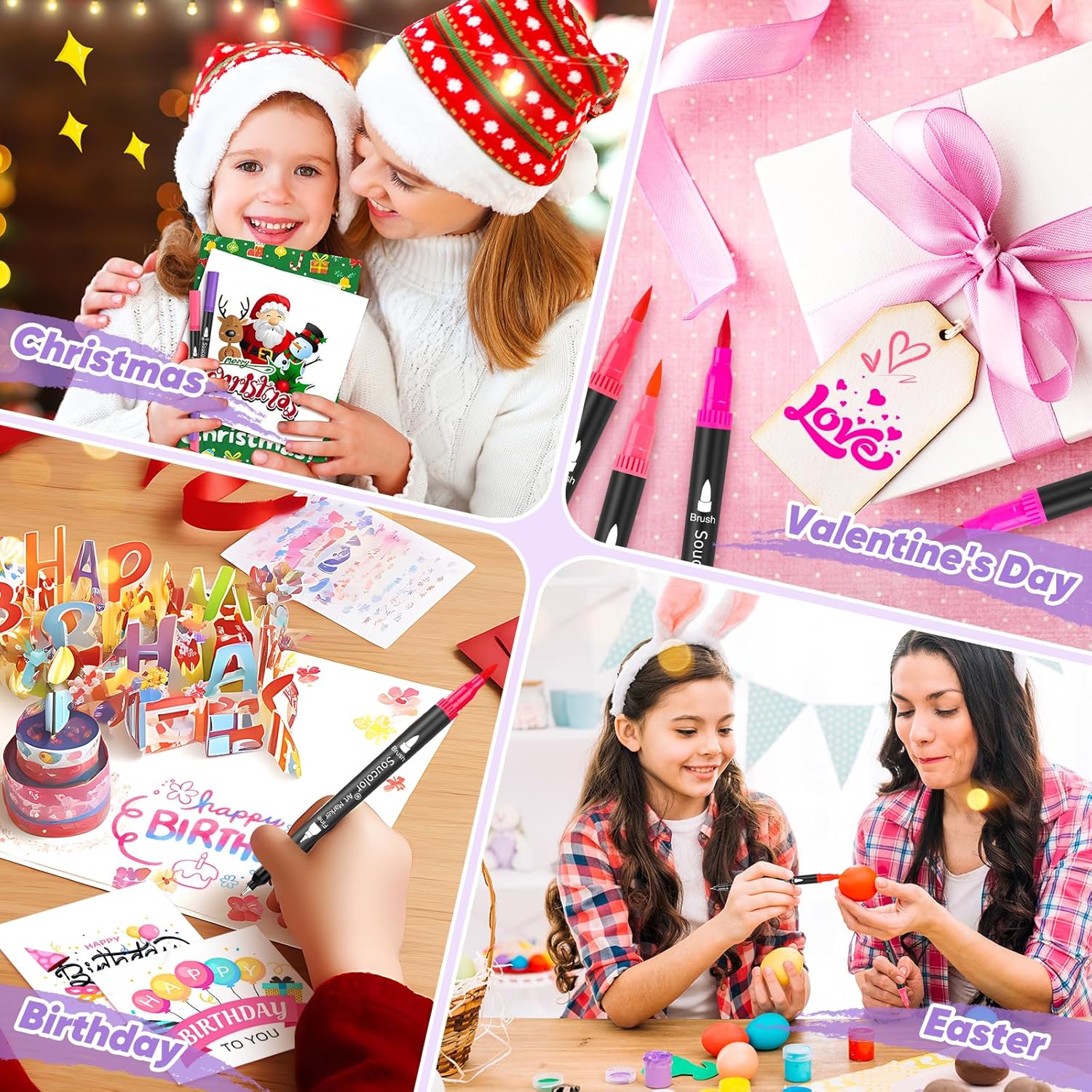 Soucolor Gifts for Teen Girls, Aesthetic Cute Preppy Stuff School Supplies, Teen Girl Gifts, Art Kits for Girls Ages 6-14, 100 Colors Dual Tip (Brush and Fine Point) Markers Pens for Mothers Day Gift