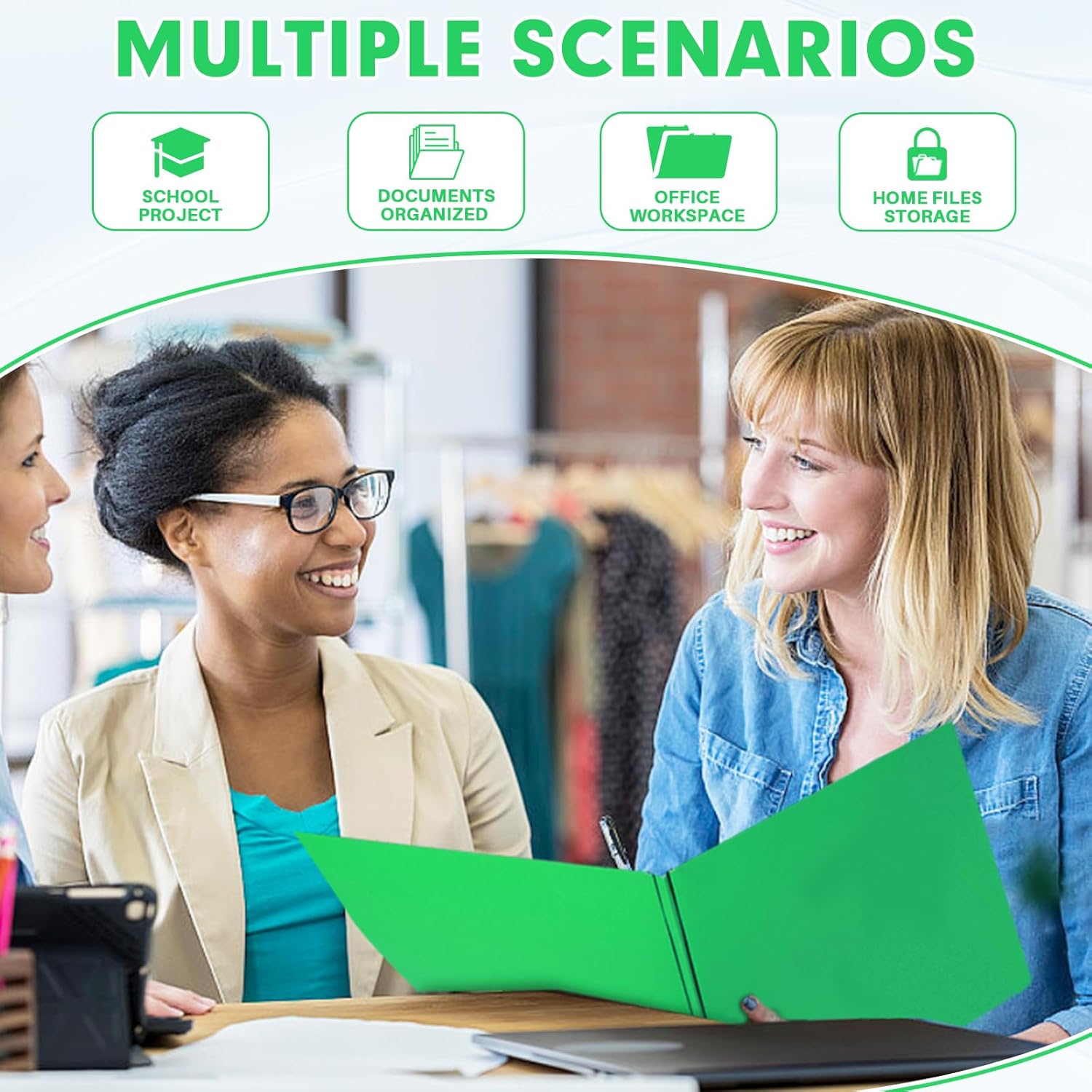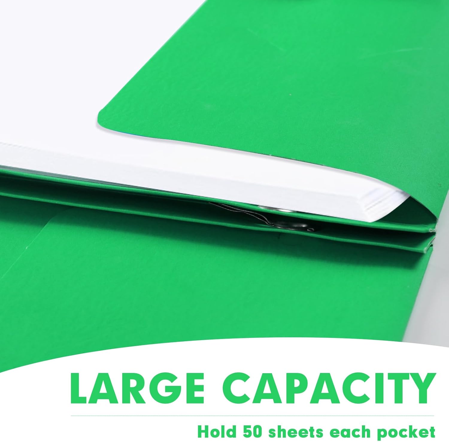 - TWO POCKET FOLDER SET: 75 Pack of green folders, each folder with 2 inner pocket, 3 prongs and 2 business card slots. Crafted from texture and heavyweight paper stock, not easy to break and deform