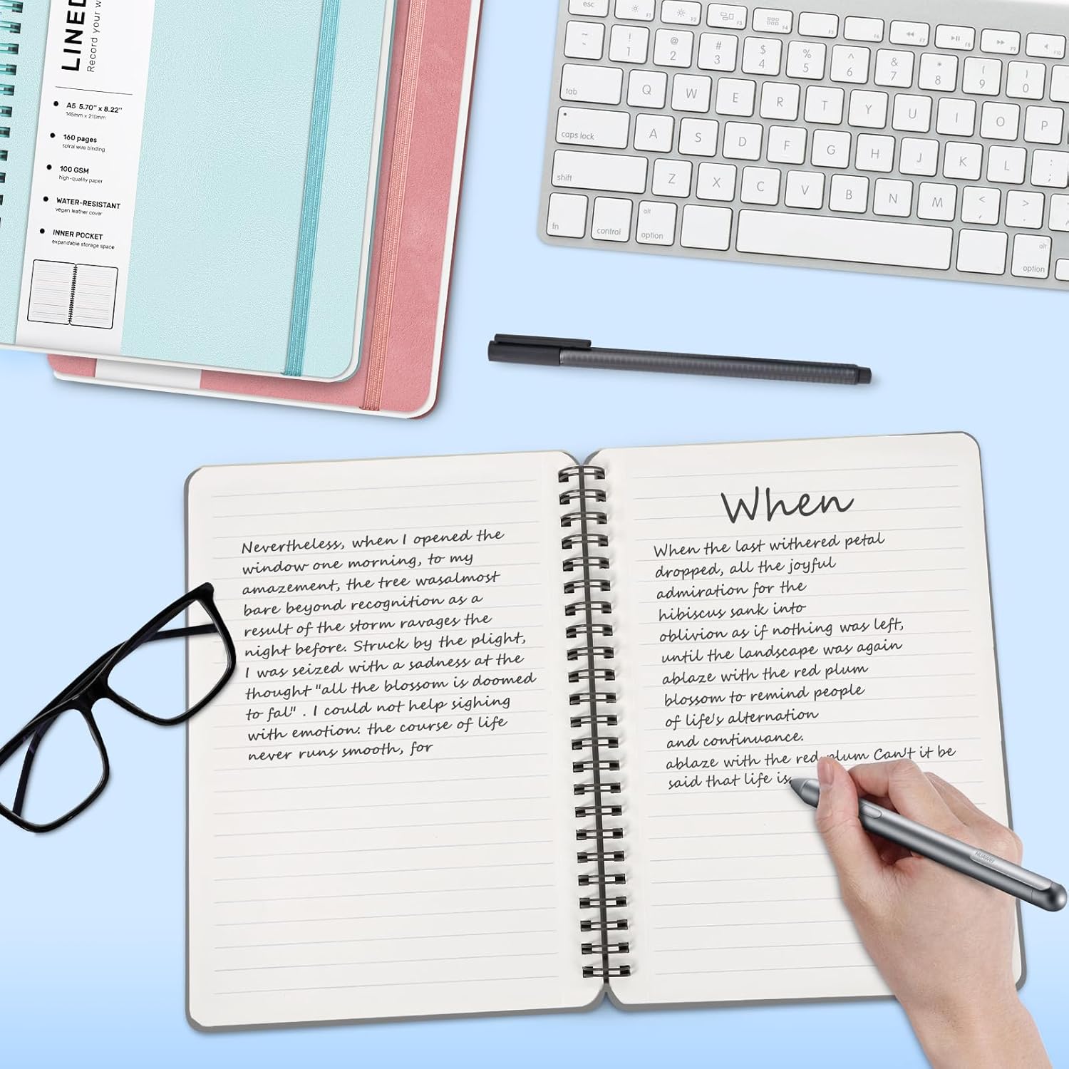 - Strong Spiral 180° Lay Flat Design - The 180° lay flat design makes writing easier, reading more convenient, and taking notes more efficient. At the same time, the hardcover notebook is designed with an elastic closure band to make it tightly closed to protect your content, and the inner paper will not be curled and kept flat. Our notebooks have perforated lines on every inside page to tear off paper easily.