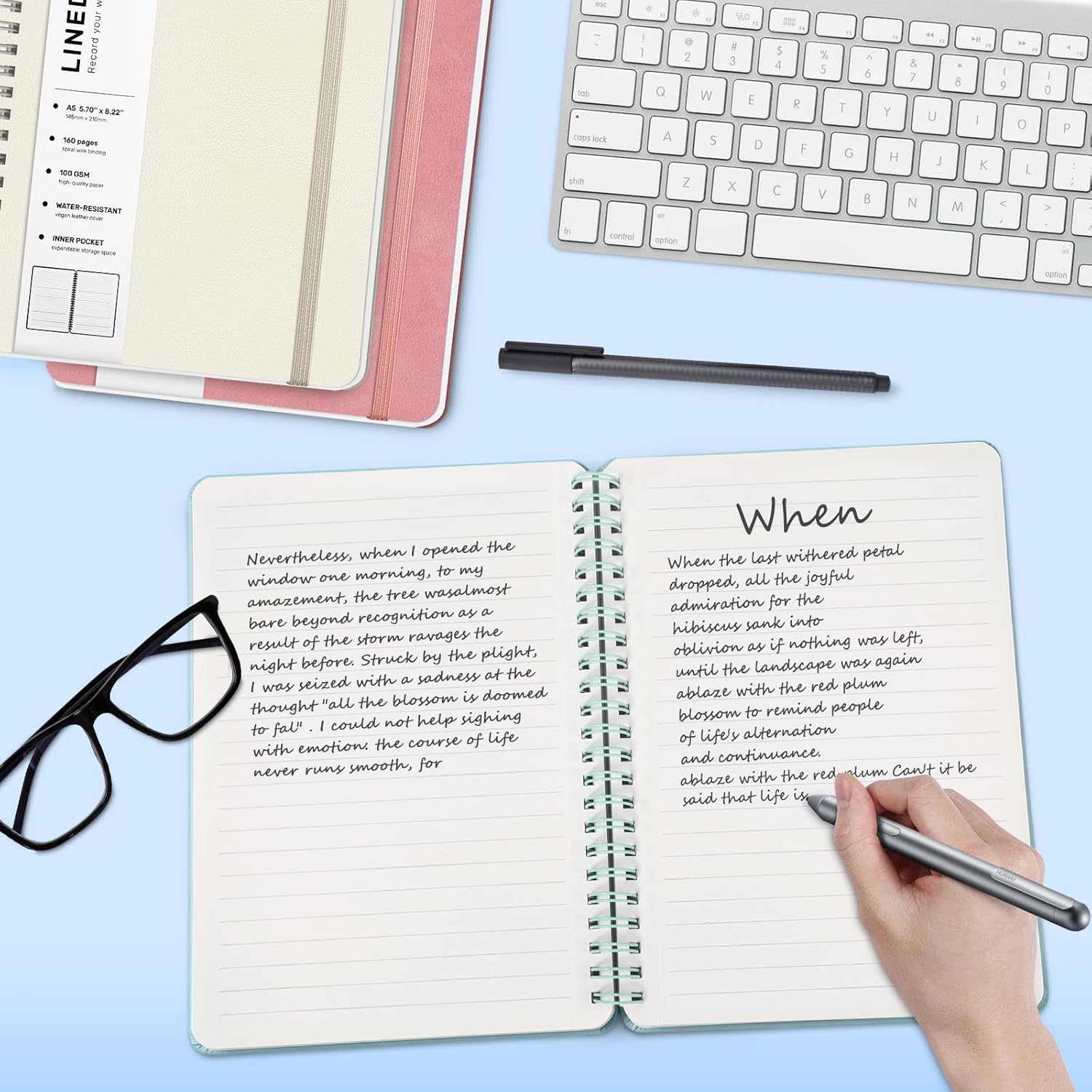 - 160 Pages A5 Notebook - This medium 5.7 x 8.2 inches A5 lined journal notebook features a waterproof pink faux leather cover, 8mm space classic college ruled notebook, total of 160 pages. The professional durable water-resistant plastic hard cover will protect your notebooks, which have oil-resistant and anti-bending properties, effectively protecting the internal paper of the journal and providing a comfortable writing surface.