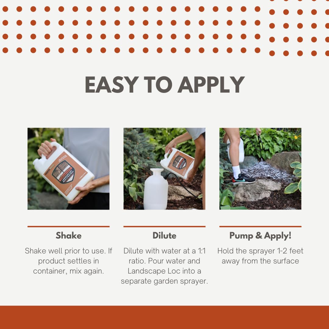 - MAKES 2 GALLONS: Mix 1 part water with 1 part Concentrate in a separate container (1:1 ratio). 1 gallon of concentrate makes 2 gallons of ready-to-use Landscape Loc.! After dilution, shake well before pouring into a garden sprayer (sold separately) and spraying.