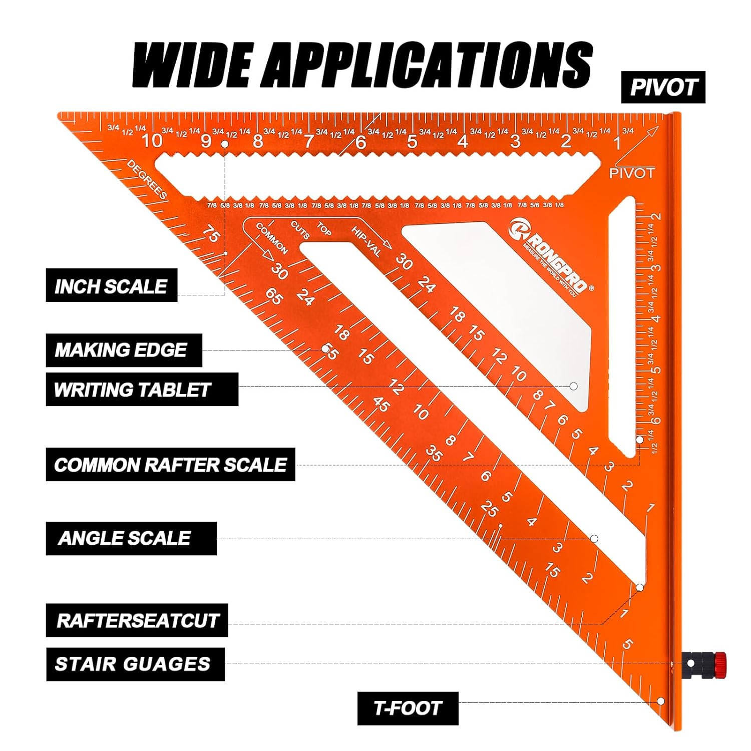 - 【Convenient and comfortable design】RONGPRO rafter square is convenient to hang and store when not in use with humanized design. The edges and corners of each triangle are polished by special craftsmanship, so that it is smooth and does not hurt your hands.